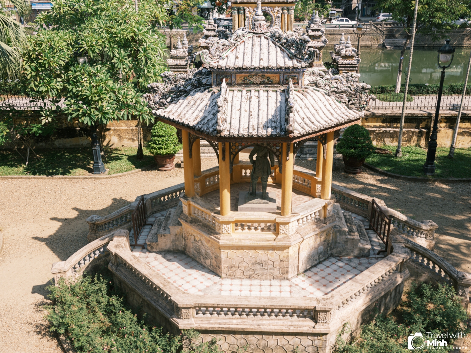 Ở phía đối diện, là cổng chính của cung An Định, thường được biết đến với cái tên “Cổng Tam Quan” với kiến trúc cổng vòm nổi bật, cùng với đó là đình Trung Lập, nơi có bức tượng với tỷ lệ 1:1 của vua Khải Định – vị hoàng đế thứ 12 của triều Nguyễn.