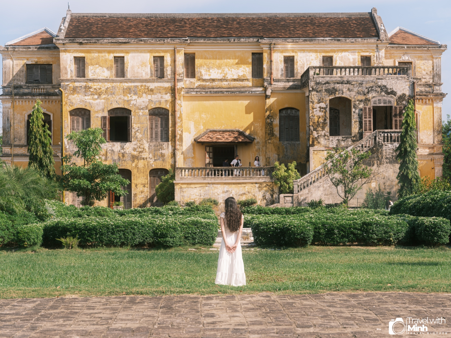 Sau khi khám phá hết phía trong lầu Khải Tường, mình tiếp tục di chuyển ra phía sau của cung điện. Nơi đây cũng là một địa điểm chụp ảnh rất đẹp, với nhiều tòa nhà cổ và vườn hoa, …