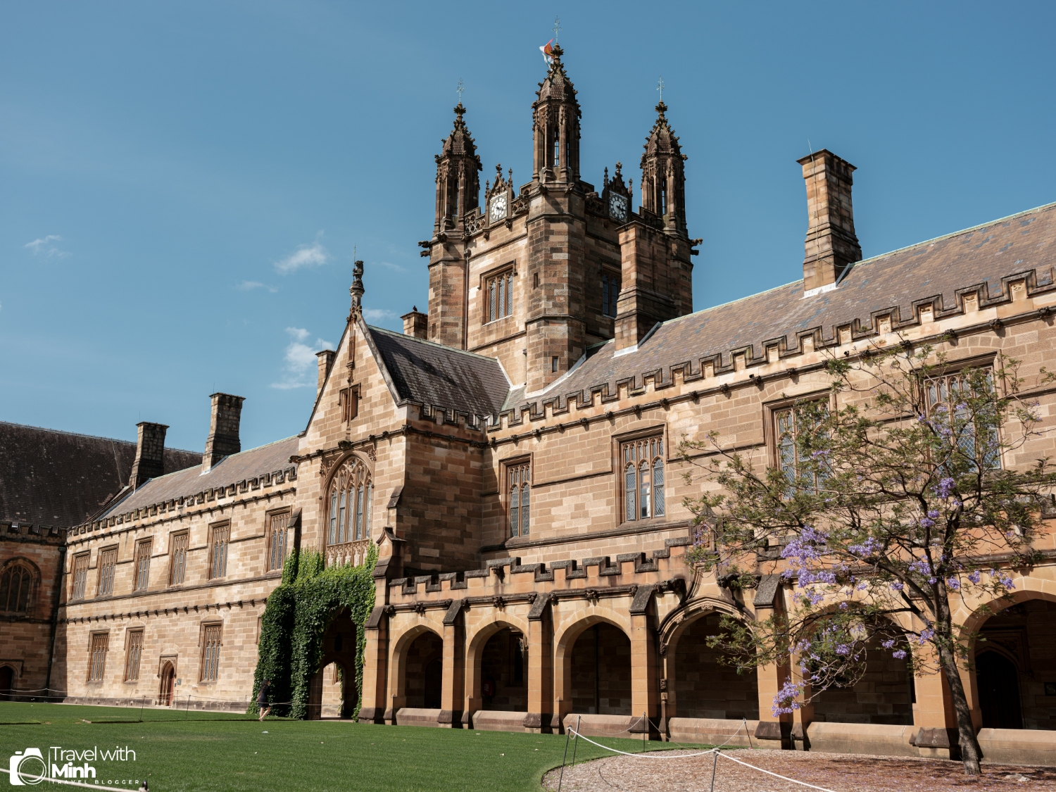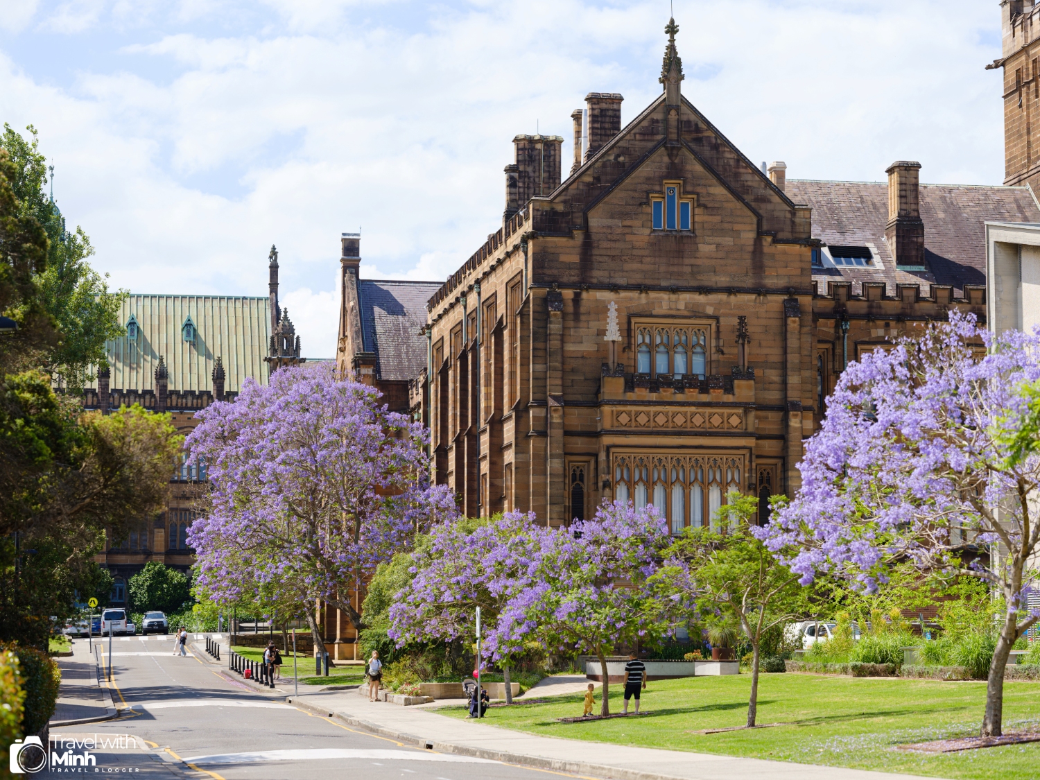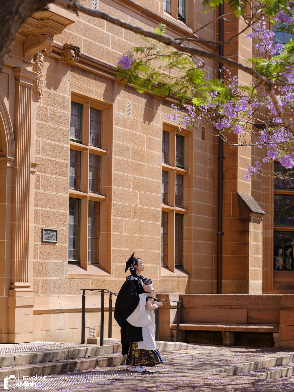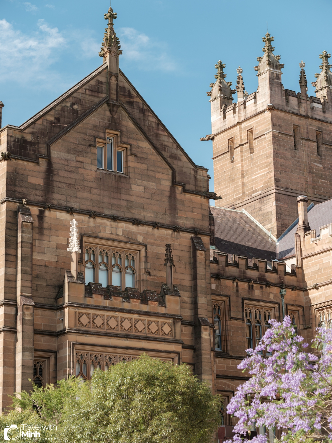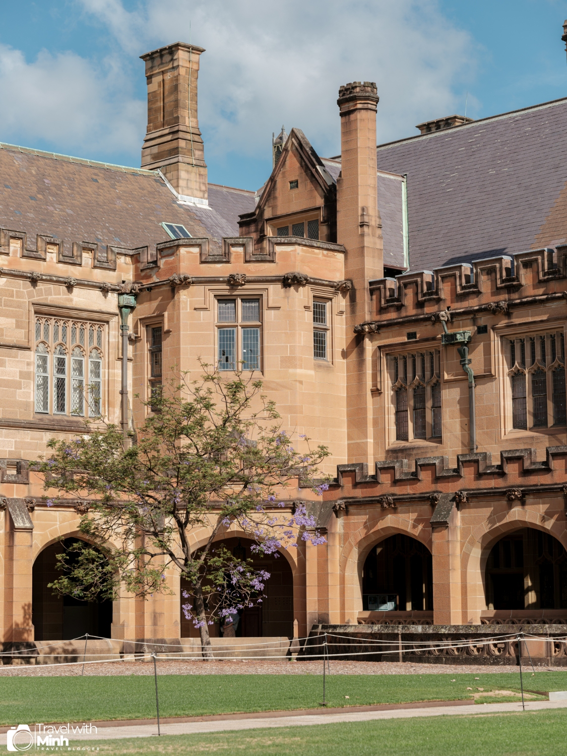 Ở góc của toà nhà cũng có một cây phượng tím. Tuy nhiên, thời điểm mình đến đây thì hoa cũng rụng khá nhiều rồi. Cuối tháng 10 sẽ là thời gian đẹp nhất để chụp ảnh tại Đại Học Sydney, nhiệt độ mát mẻ, nắng không quá gắt, cùng với hoa phượng tím đang ở độ nở đẹp nhất chắc chắn sẽ không làm bạn thất vọng.