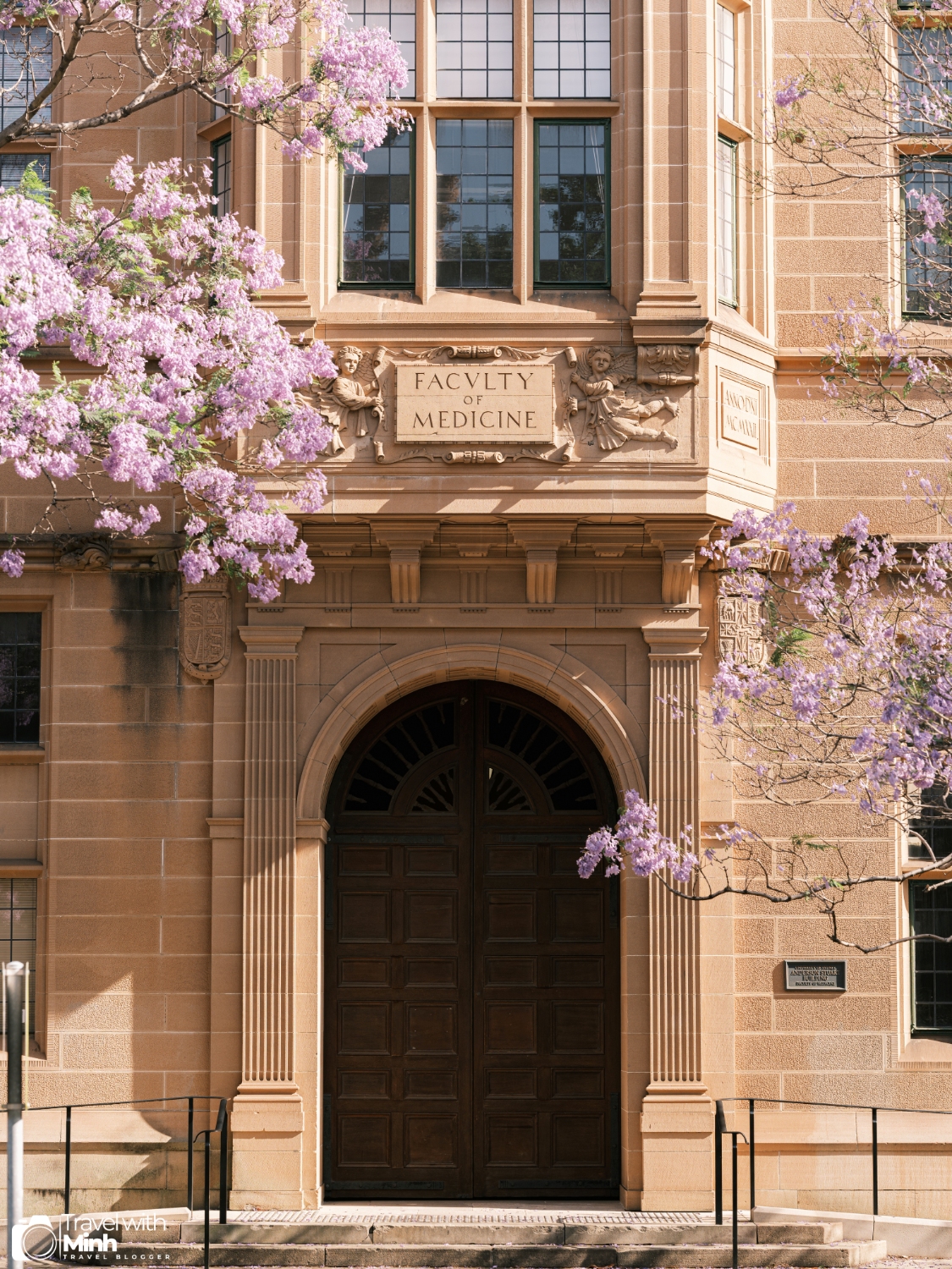 Địa điểm tiếp theo mình đến là toà nhà Faculty of Medicine, nơi có hàng cây phượng tím cực đẹp phía trước cửa.