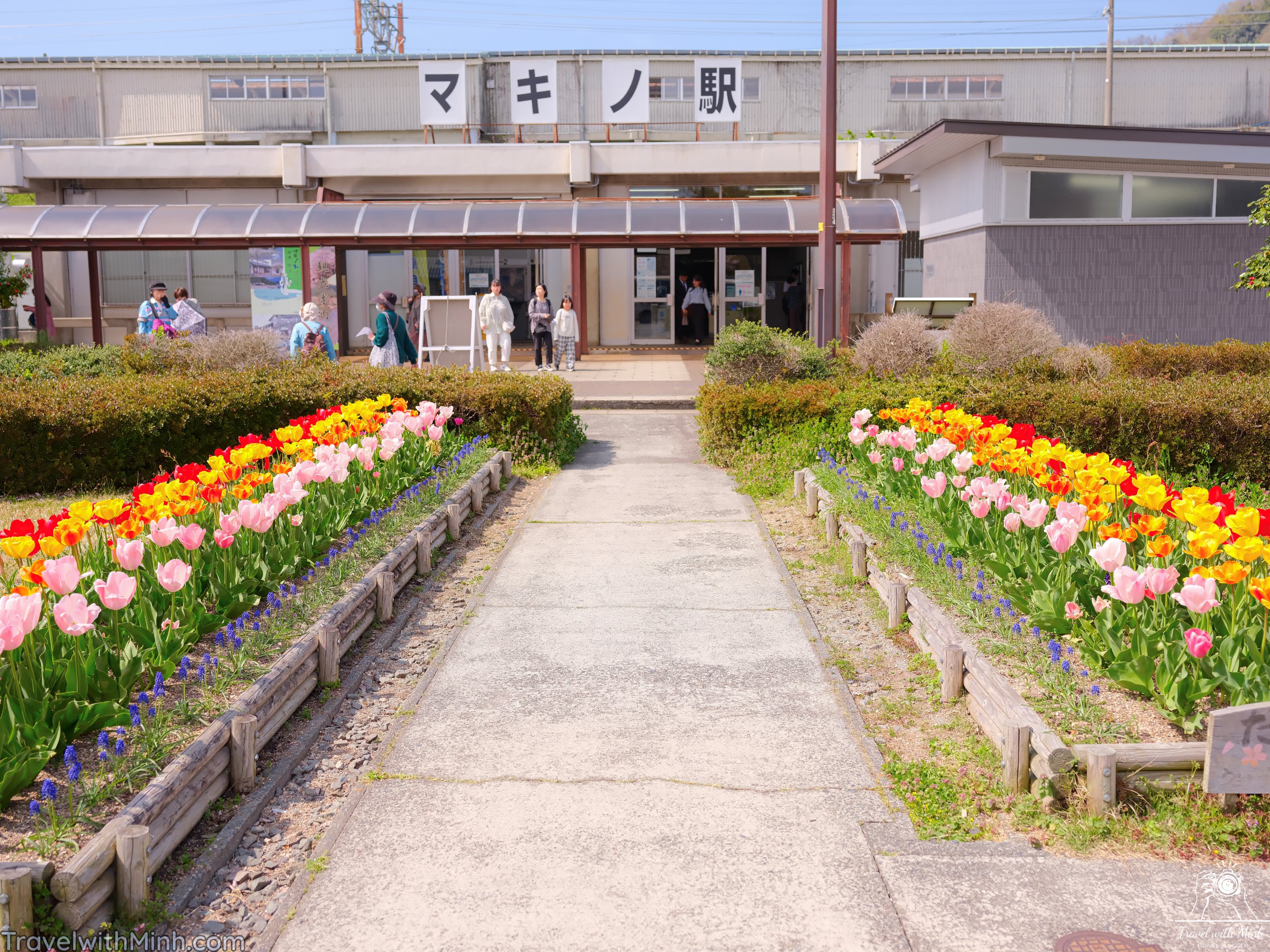 Ngay trước cửa ga Makino cũng có hai hàng hoa tuilip rất đẹp.