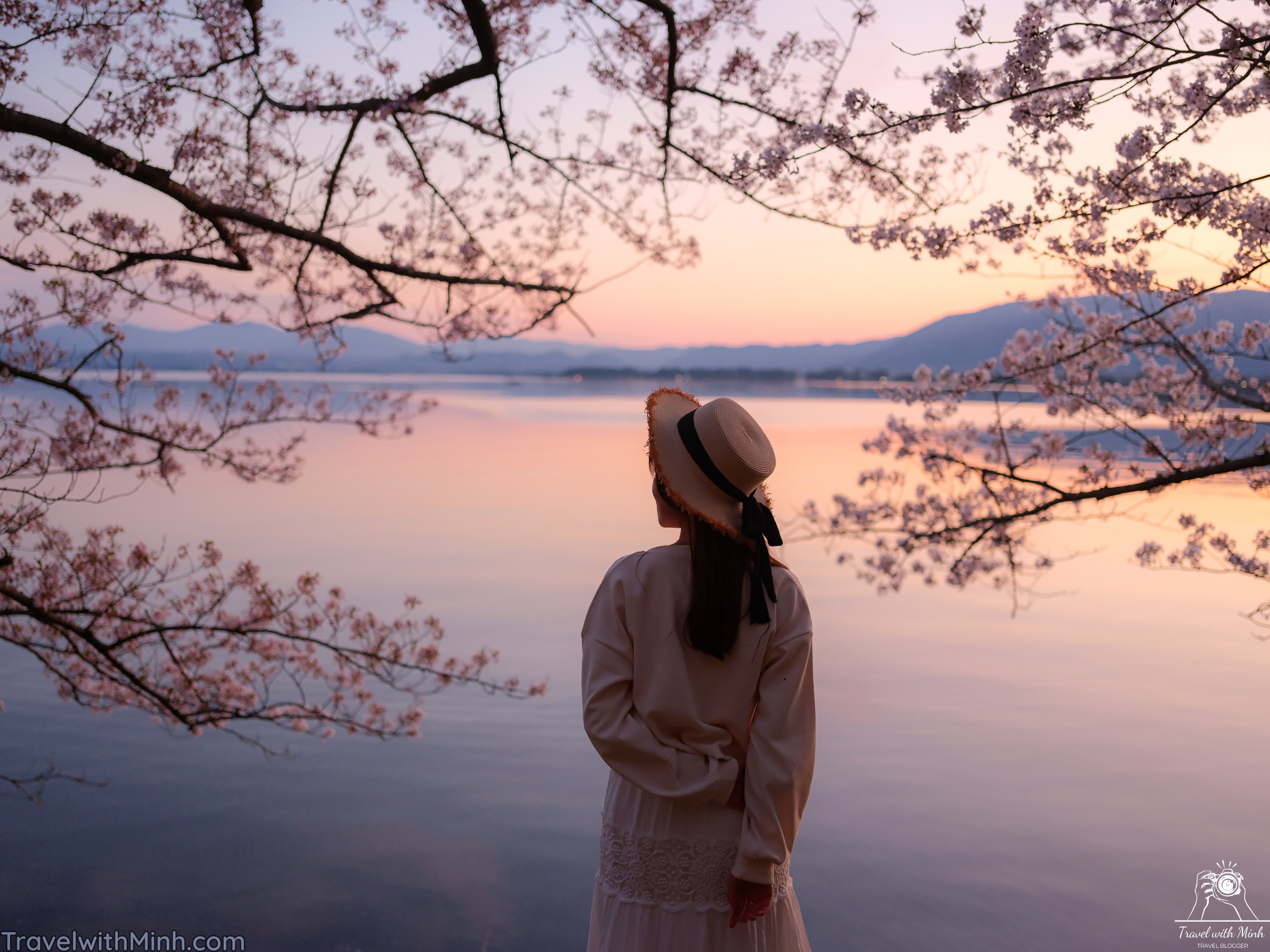 Đây thực sự là nơi mà bạn rất nên đến vào mùa hoa anh đào. Vừa có thể ngắm hoa, ngắm thị trấn bình yên nằm bên hồ Biwa rộng lớn, lại không gặp phải tình trạng quá đông đúc như những địa điểm ngắm hoa anh đào khác. Thời gian chụp ảnh trọn vẹn của mình kéo dài khoảng 6 tiếng, từ 13h đến 19h nên bạn căn thời gian đến đây sao cho hợp lý nhé.