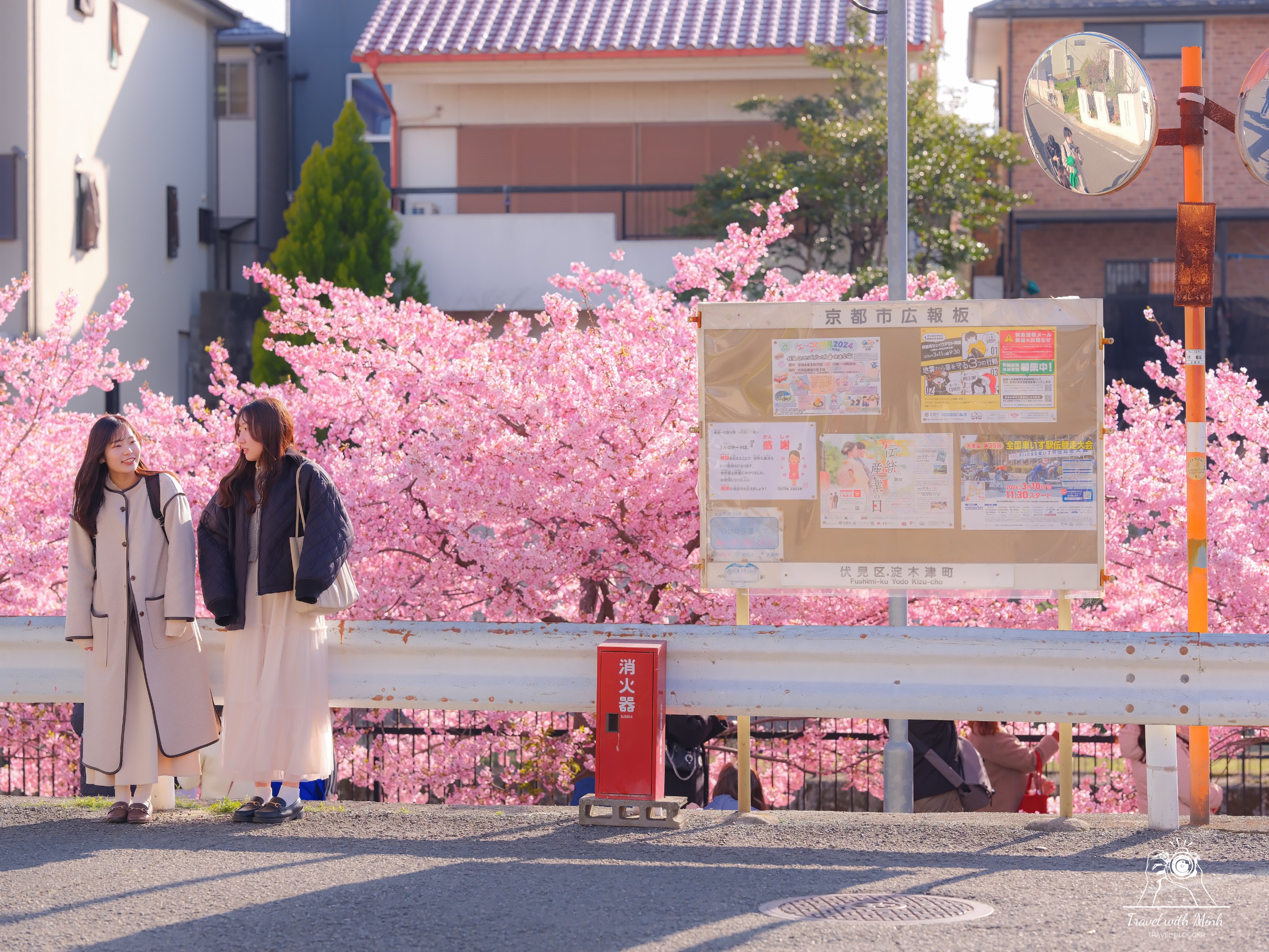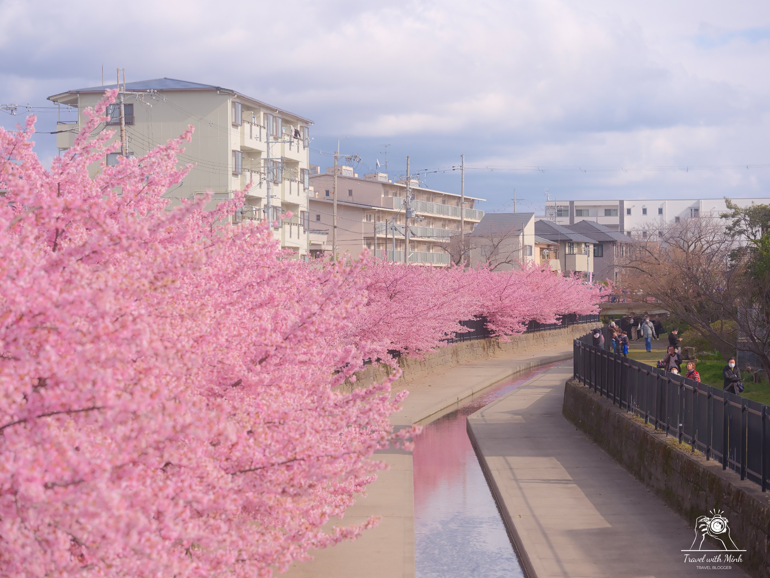 Sau khoảng 10 phút đi bộ từ ga Yodo, thì đây là địa điểm của chúng ta ngày hôm nay. Một hàng cây Kawazu Sakura dài 500 mét !