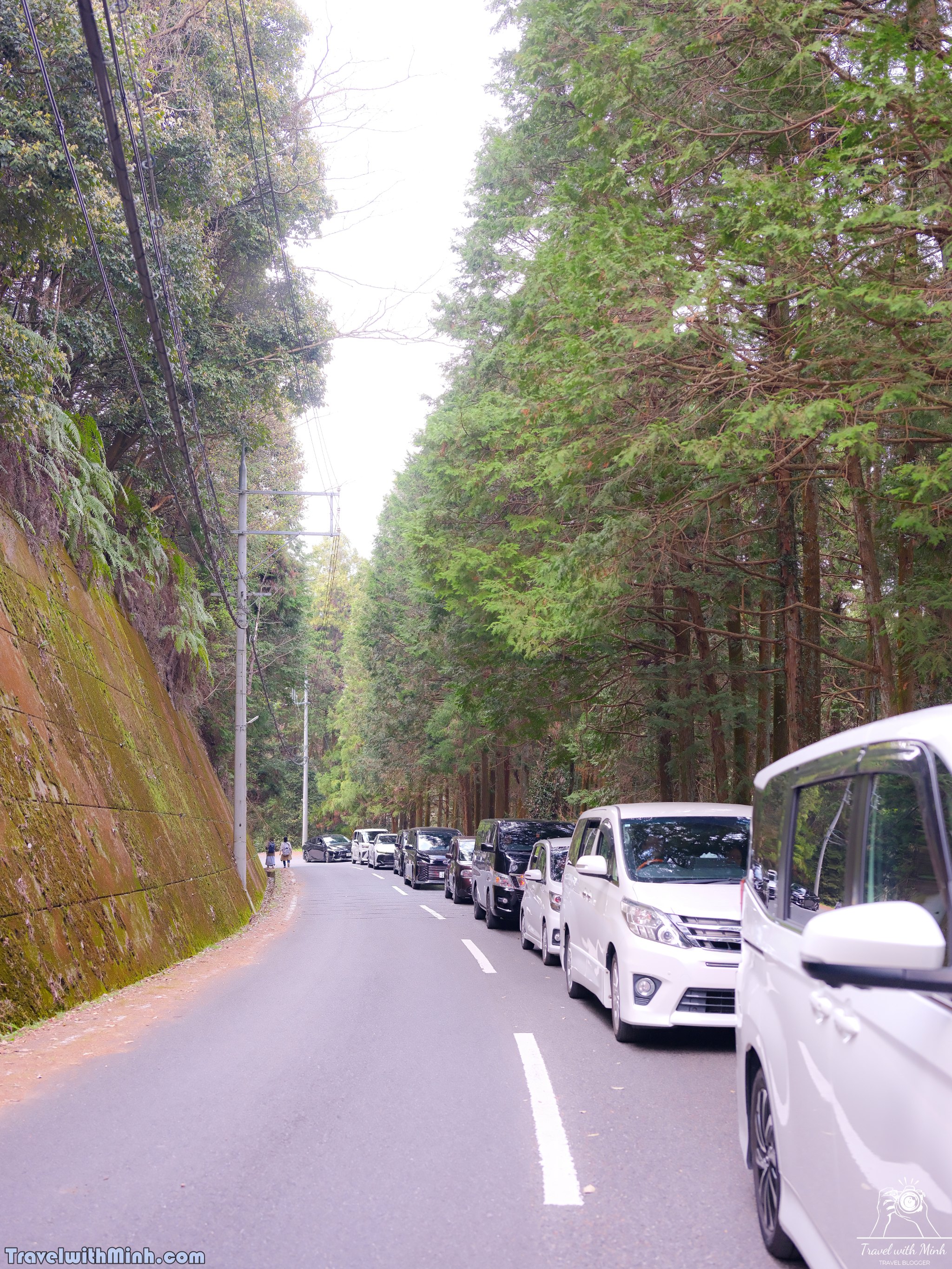 Cảnh tượng ô tô xếp hàng dài chờ lên núi. Đi bộ sẽ nhanh hơn nhiều nhé 😀