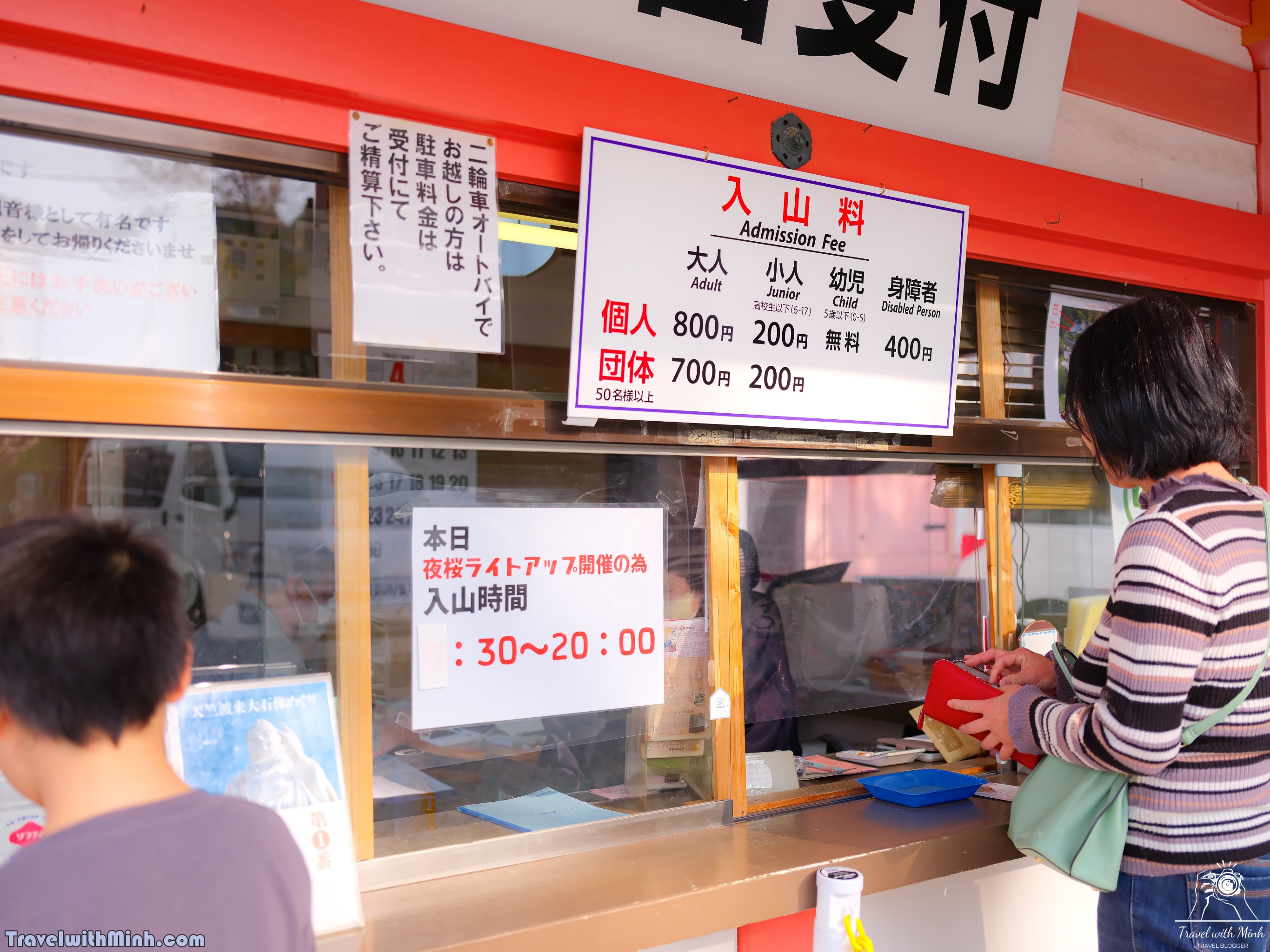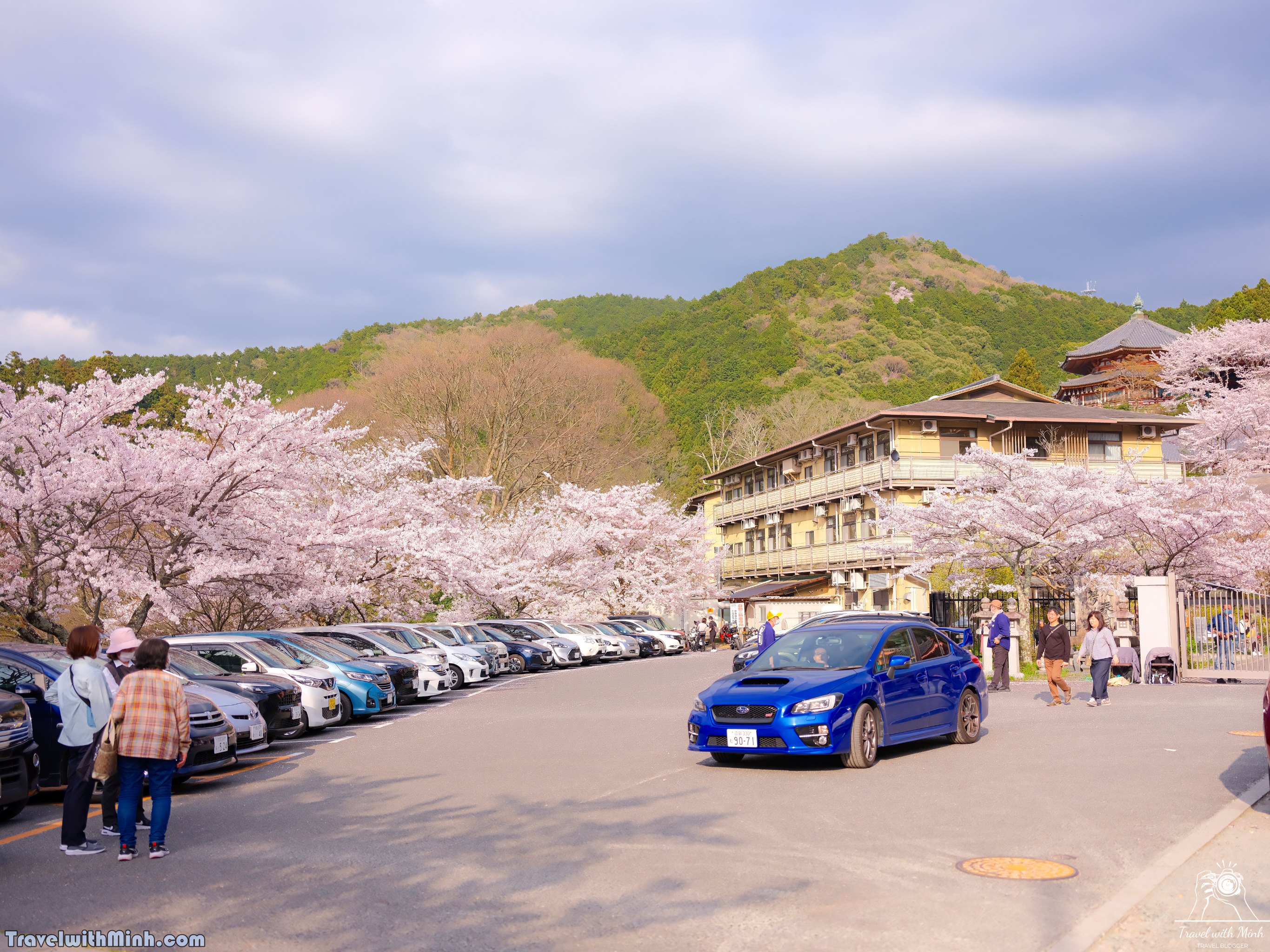 Bạn có thể đi ô tô, tàu điện hay xe bus để tới đây. Tuy nhiên, vào mùa hoa anh đào, mình khuyên các bạn nên đi tàu điện hoặc xe bus, vì có quá nhiều ô tô tới đây, xảy ra tình trạng tắc nghẽn dài, và thời gian trung bình để đi ô tô từ chân núi cho tới ngôi chùa là khoảng 2 tiếng, trong khi chúng ta chỉ mất 30 phút nếu đi bộ 😀