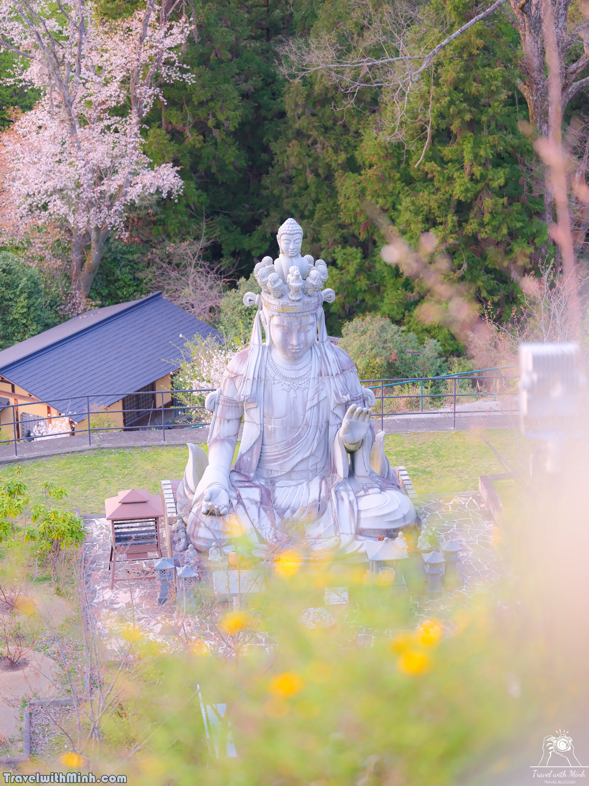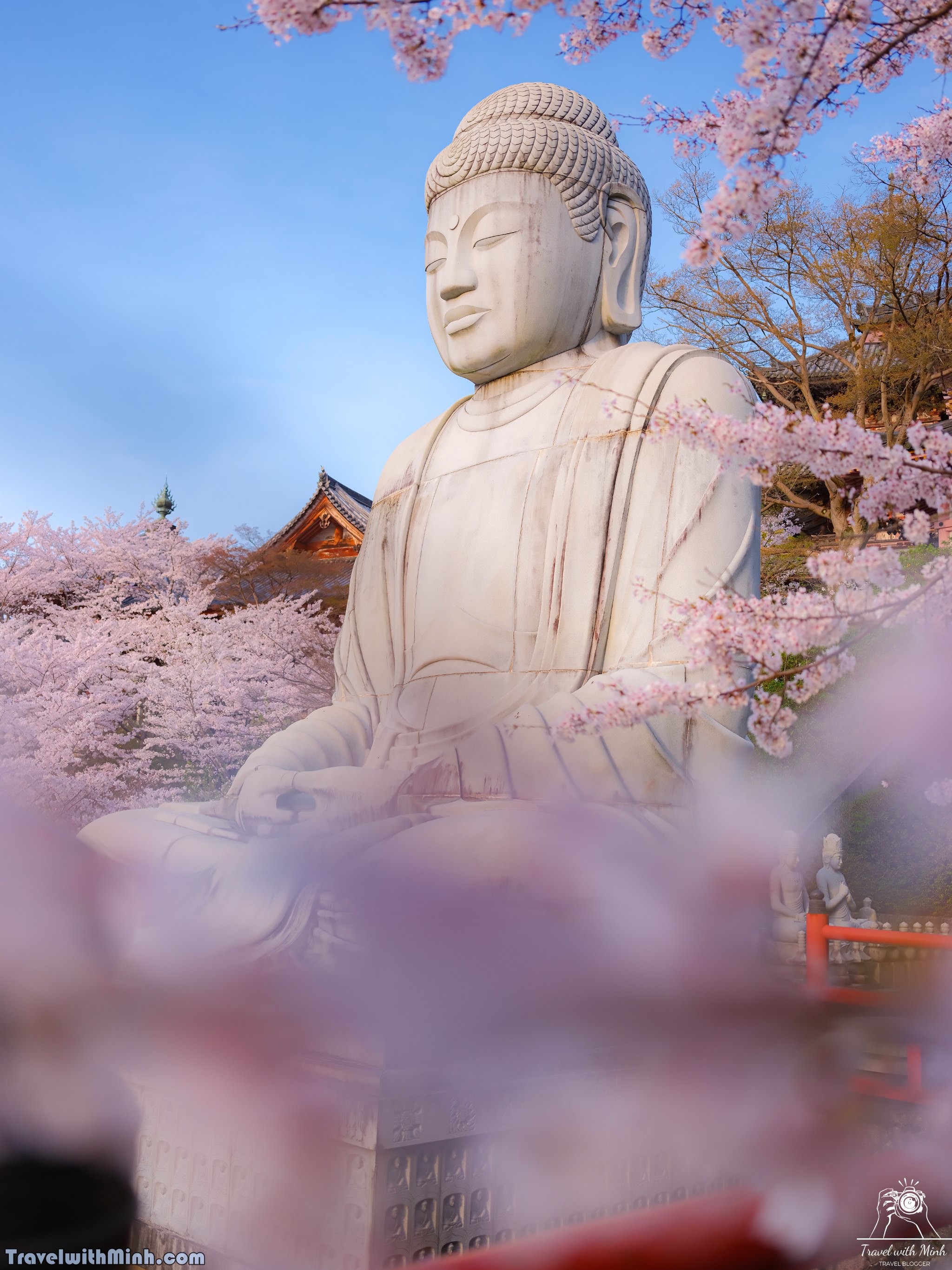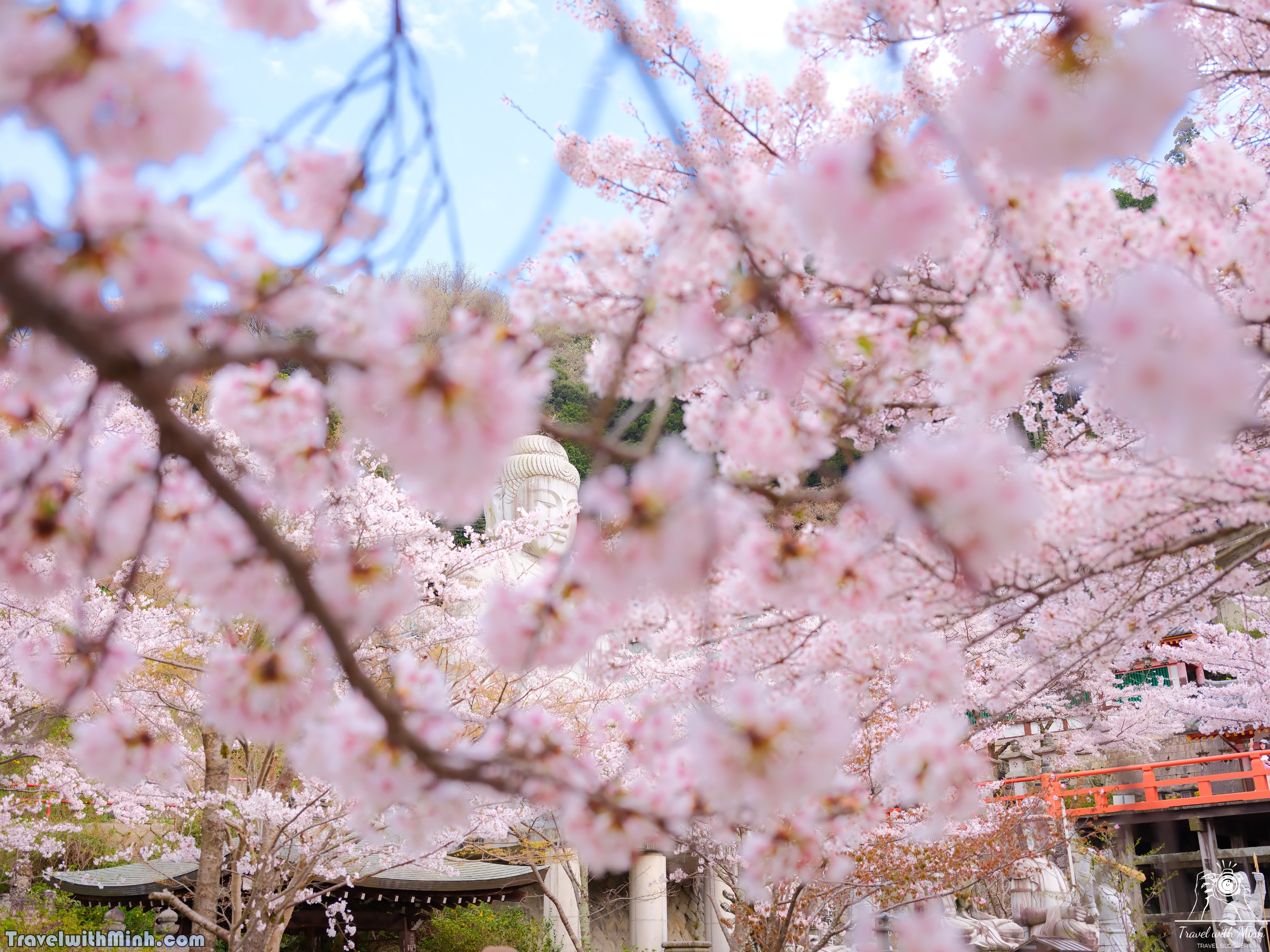 Và đây là những gì mình chụp được ở tầng thứ 3, toàn bộ bức tượng và các ngôi chùa bên cạnh ngập trong hoa anh đào.