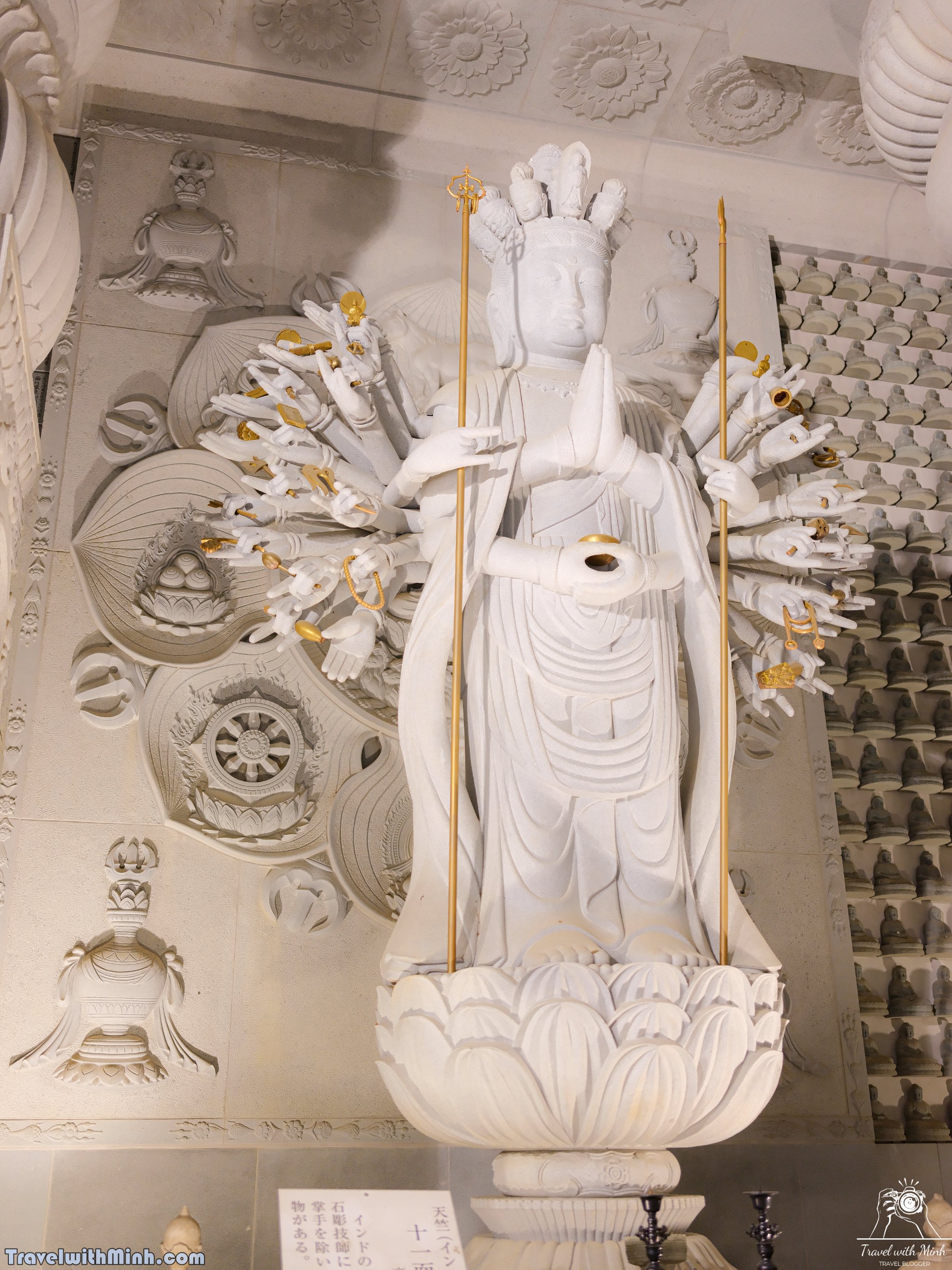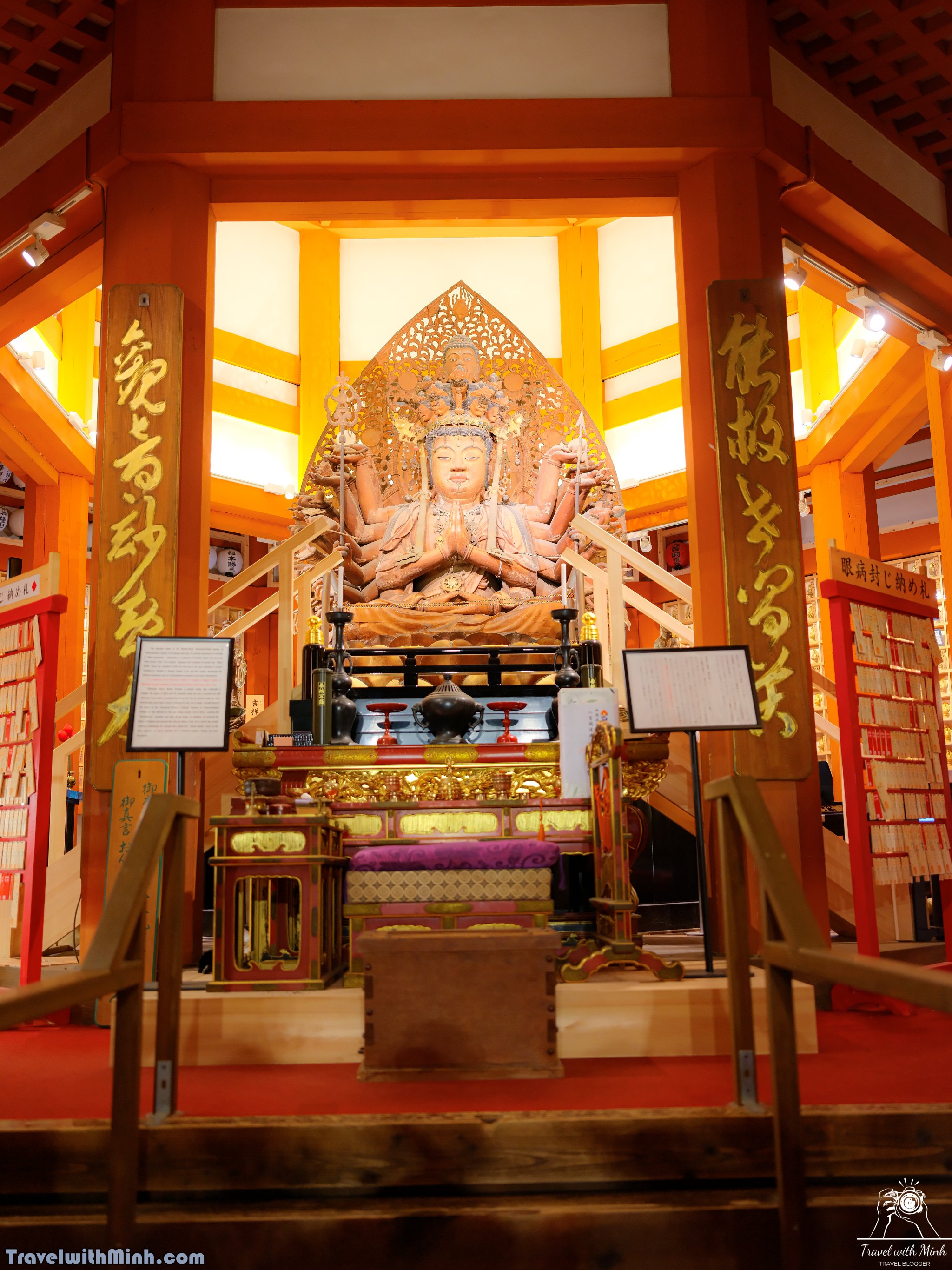 Và trung tâm của điện chính, là một tượng Phật nghìn tay ngồi trong một khối bát giác. Ngôi chùa này cũng khá nổi tiếng với cầu xin sức khỏe, đừng bỏ lỡ khi tới đây nhé.