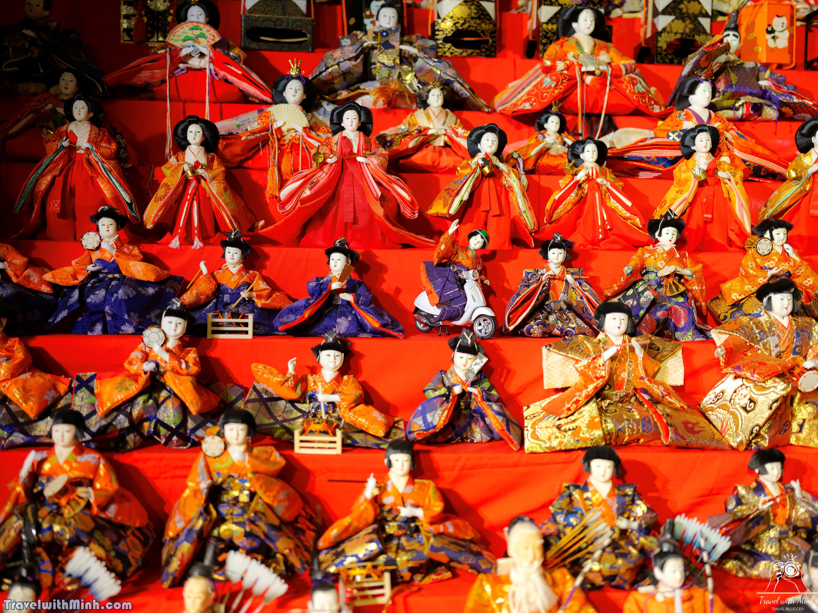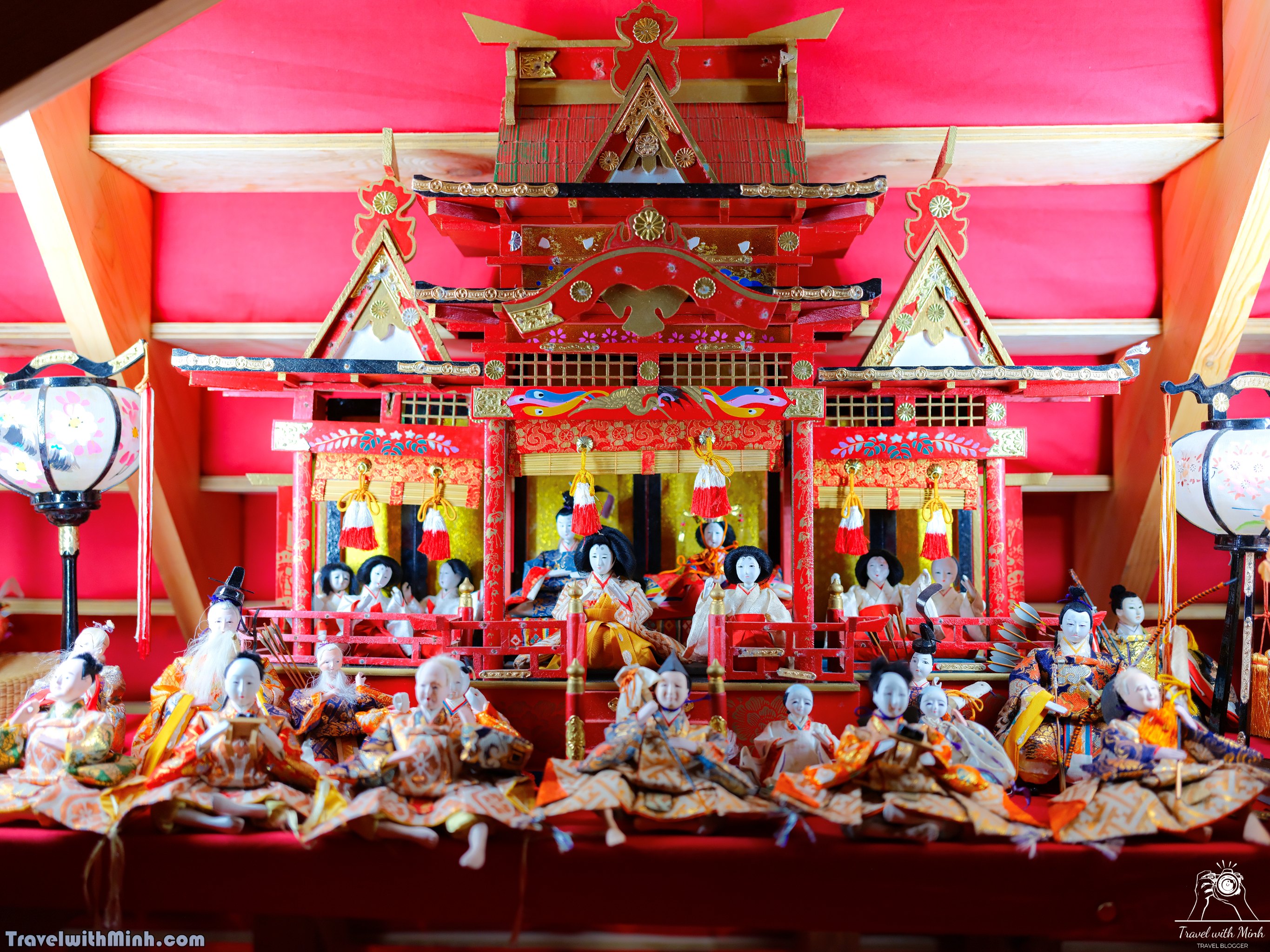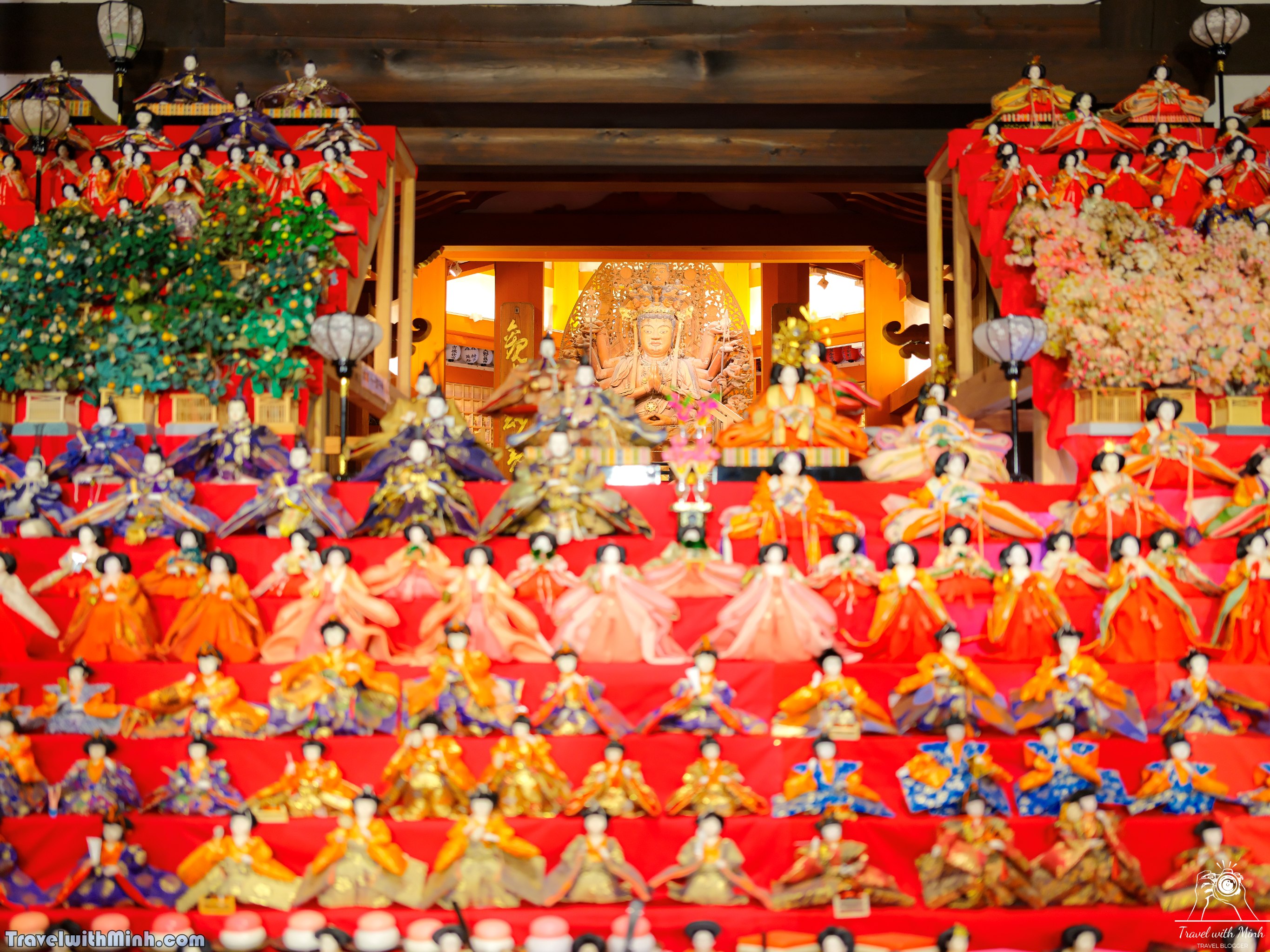 Bên trong điện chính, là sự xuất hiện của hàng trăm búp bê Hina (búp bê truyền thống của Nhật Bản).