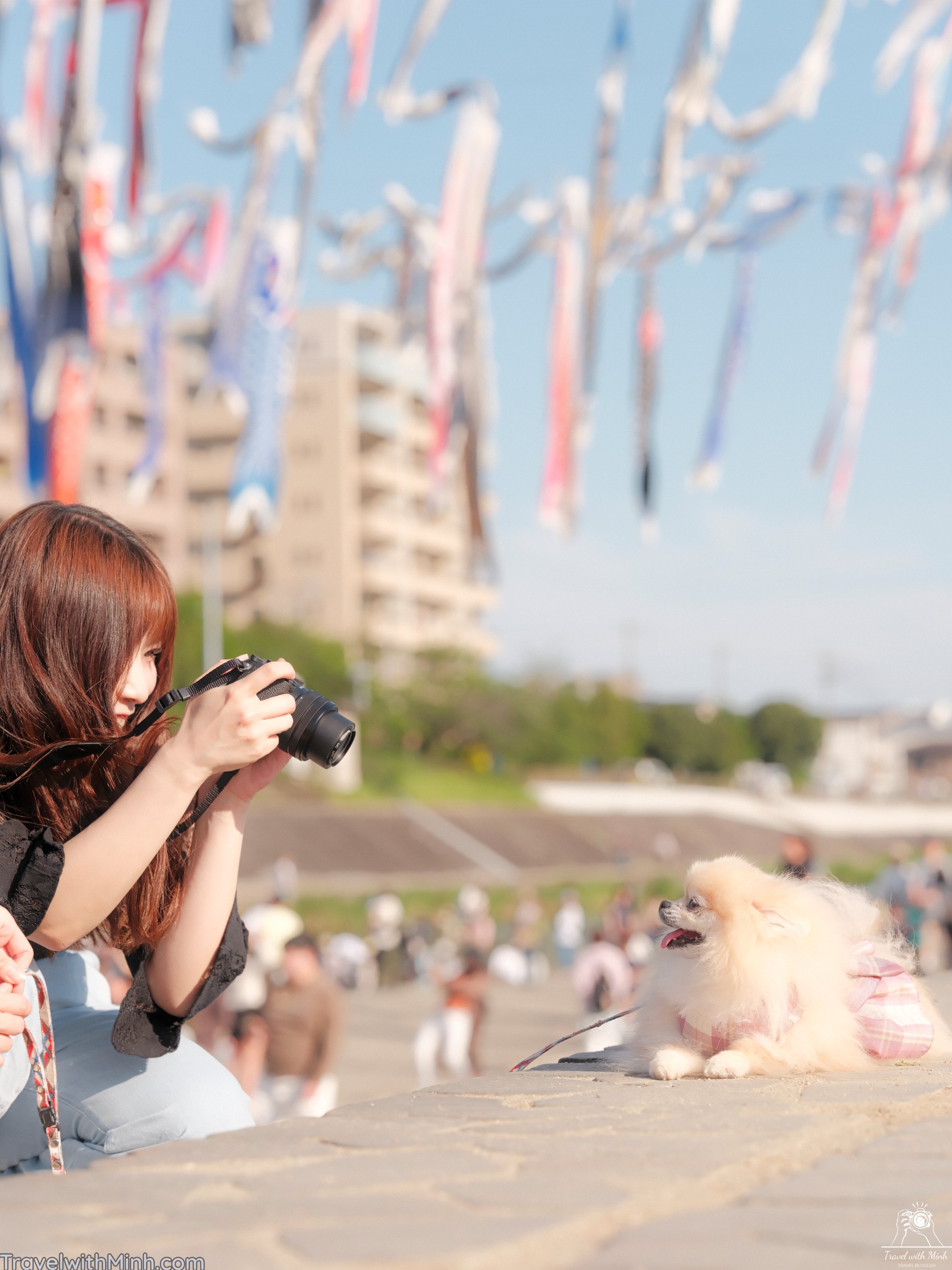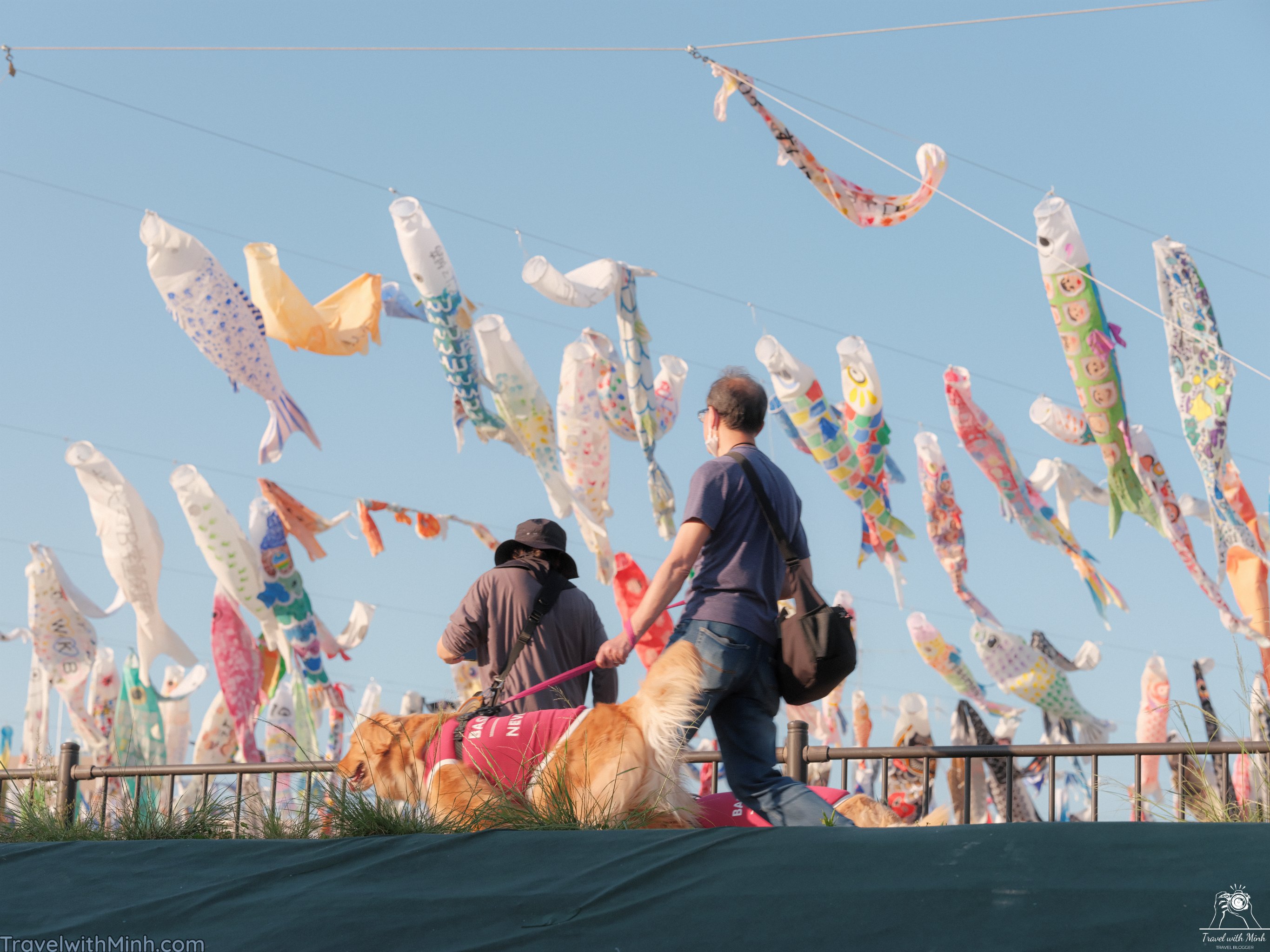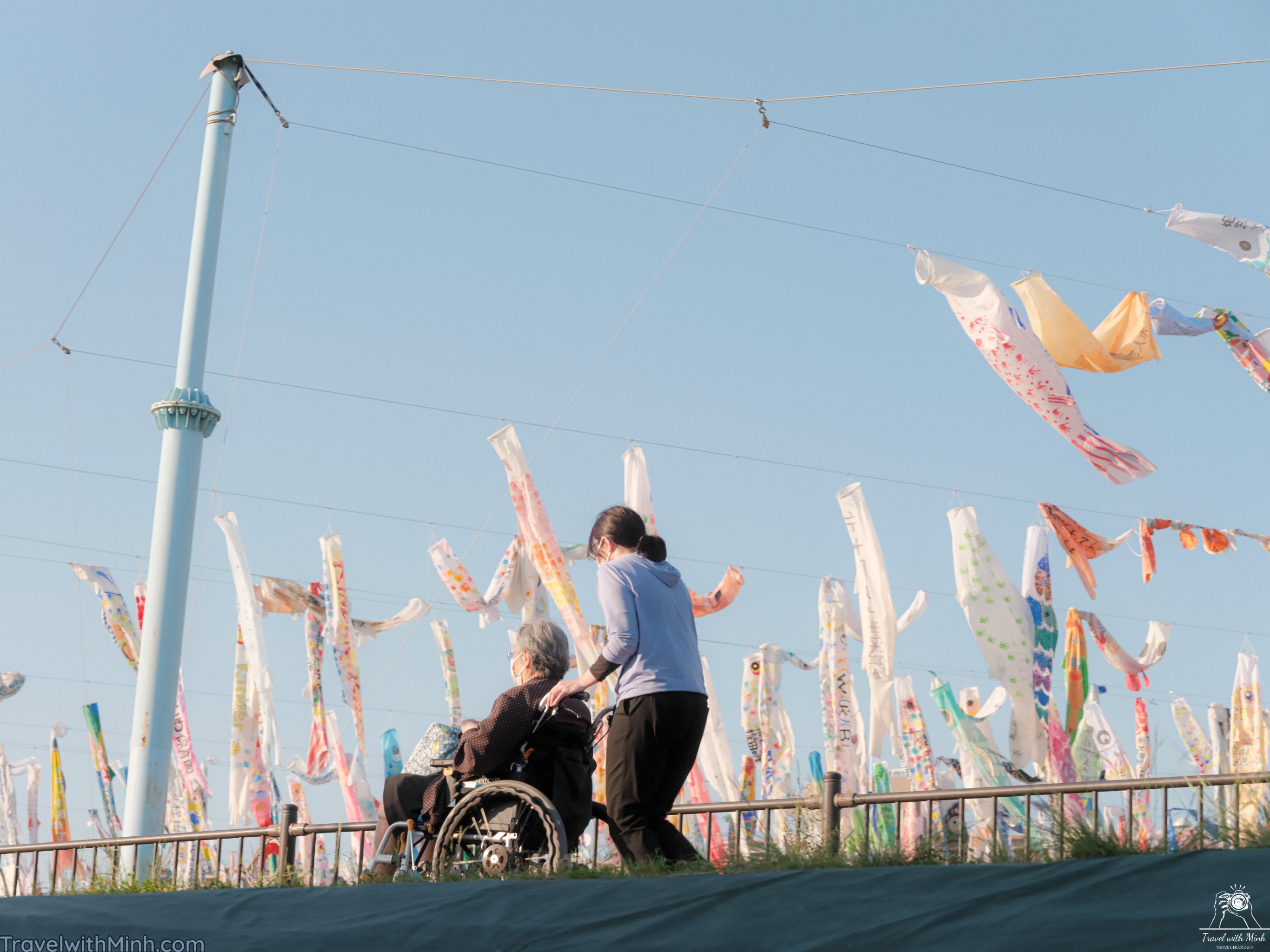 Thời điểm treo cờ cá chép cũng trùng với dịp nghỉ lễ Golden Week của Nhật Bản, nên có rất đông gia đình cùng con nhỏ đến đây tham dự, chụp ảnh, cũng như picnic. Phía trước công viên cũng có sông Akuta với mực nước thấp, trẻ nhỏ cũng có thể thoải mái vui chơi dưới sông.