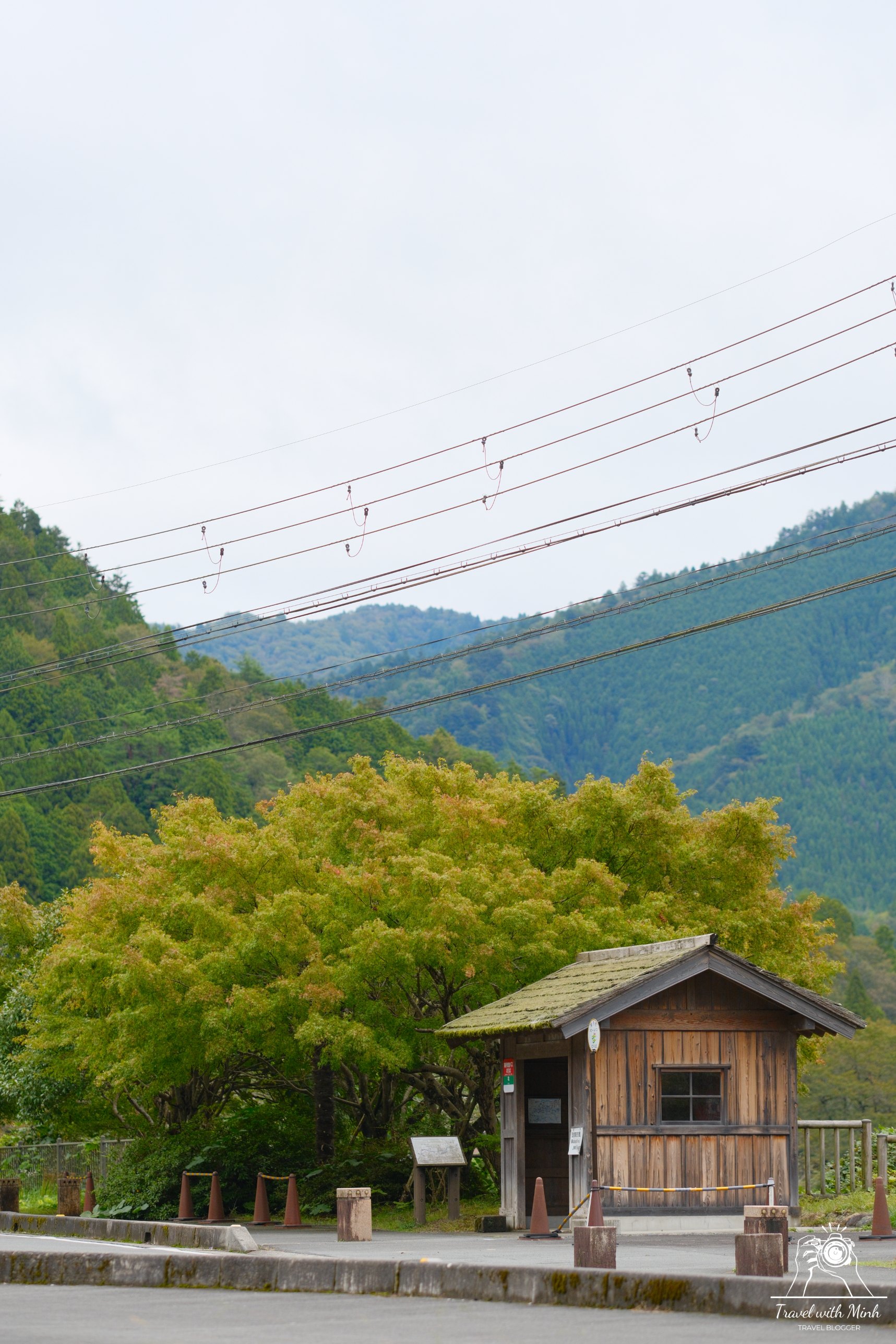 Sau đó bạn đi bộ ra cửa ga, đợi xe bus tuyến Miyama Sonobe (美山園部線) và đi đến làng cổ, với phí chỉ 600 yen.