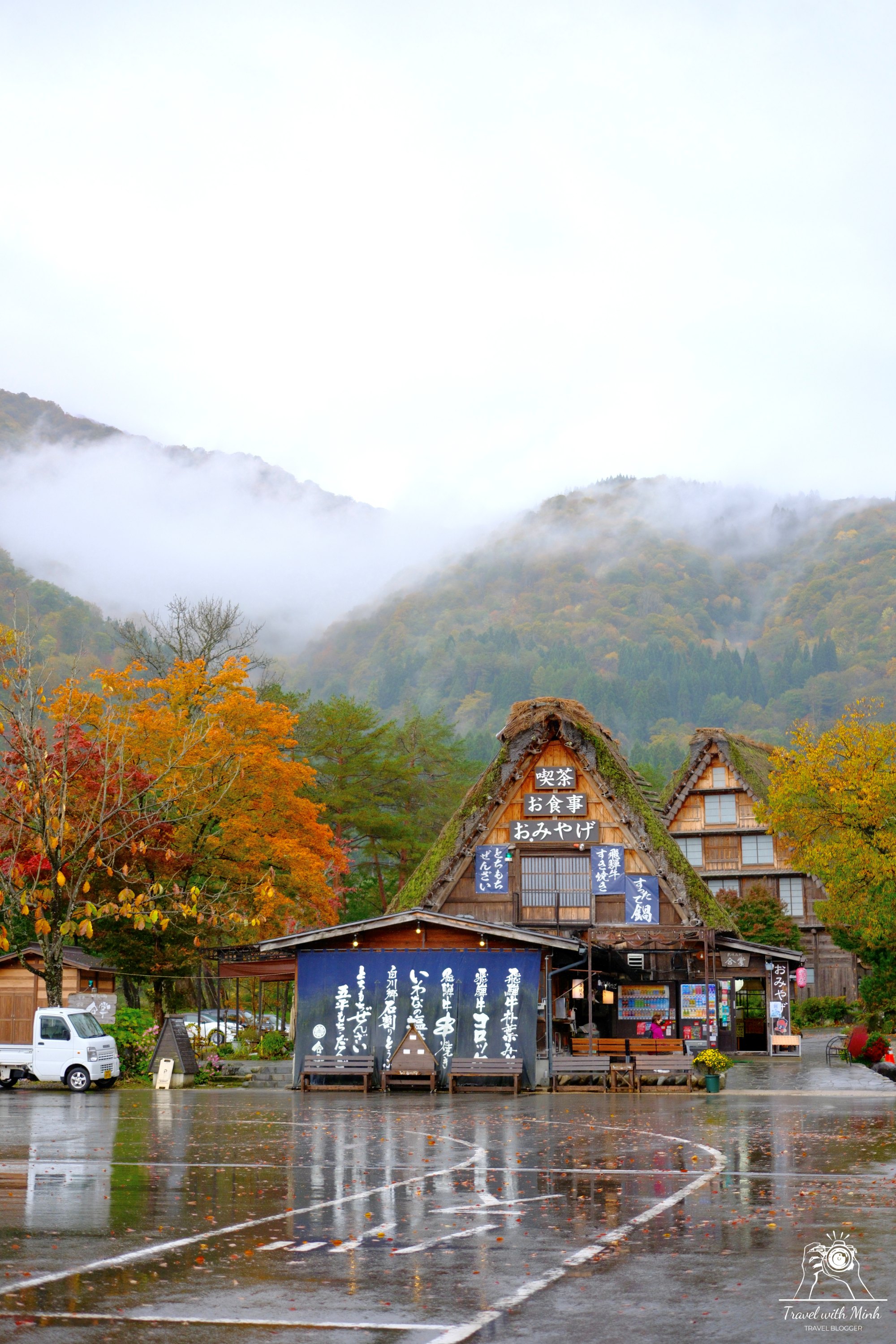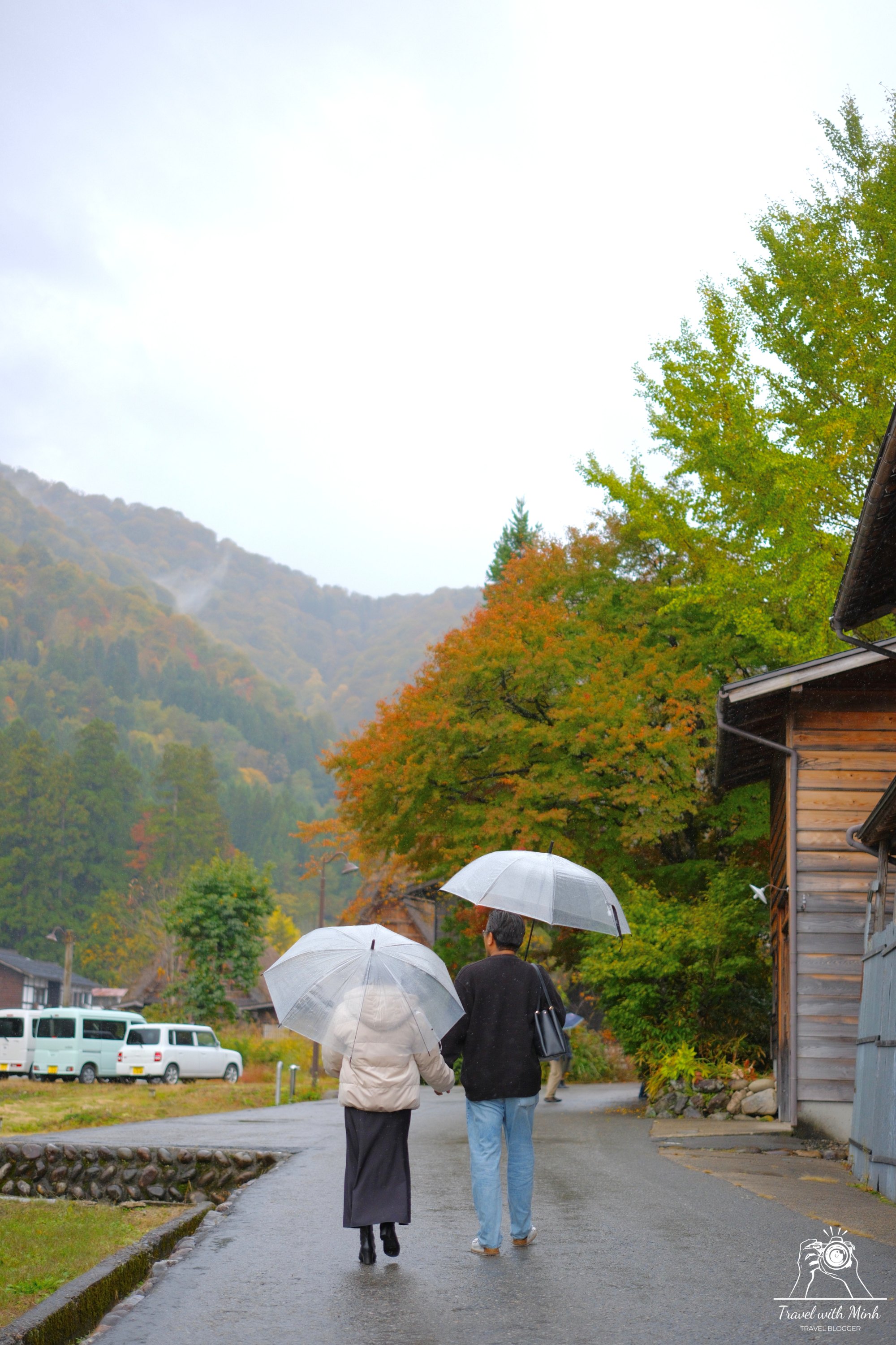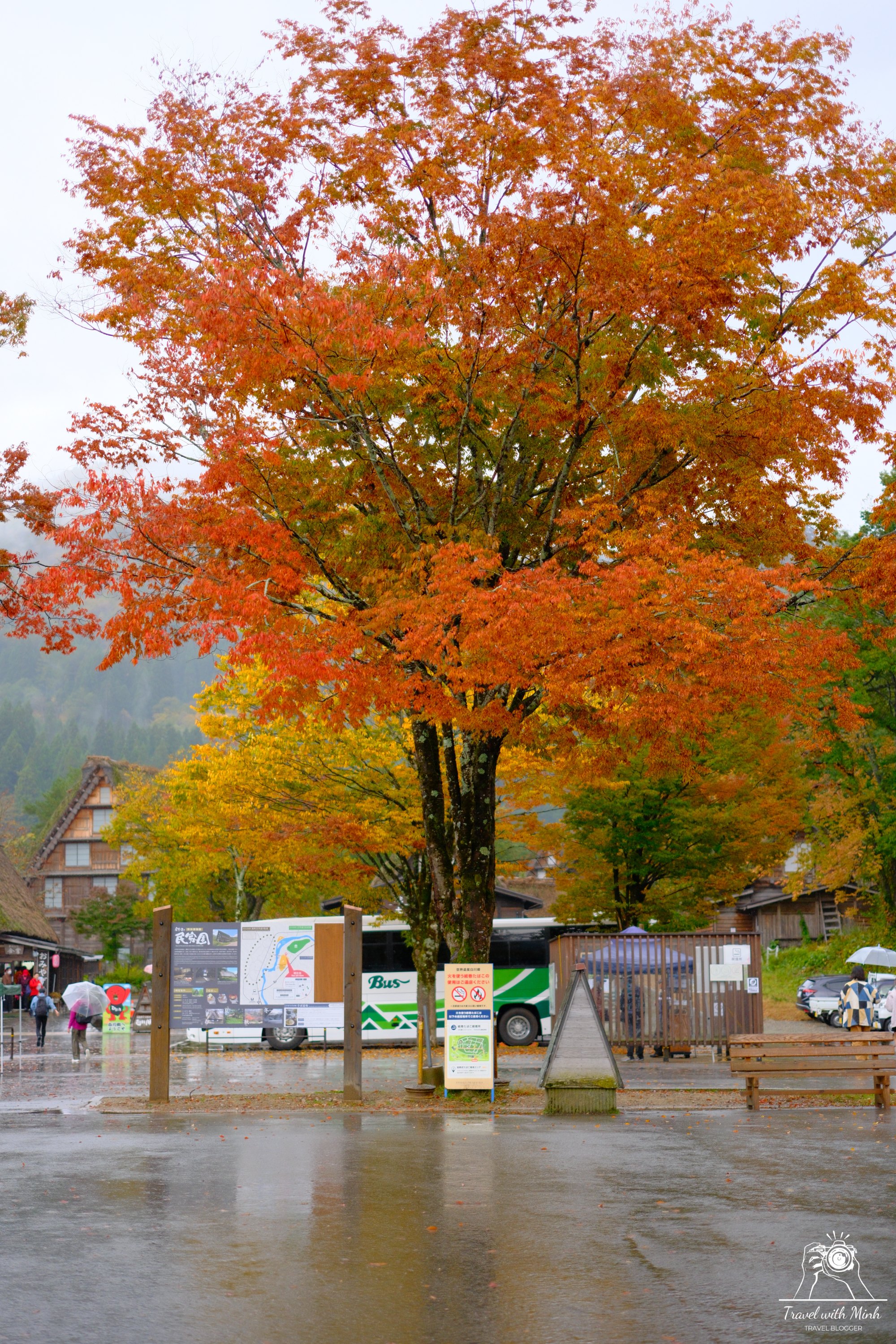 Mình quyết định đến Shirakawago vào cuối tháng 10, khi mà lá cây đã bắt đầu chuyển sang màu vàng và đỏ hết. Và thật không may, trời đã đổ mưa rất to khi mình tới nơi.