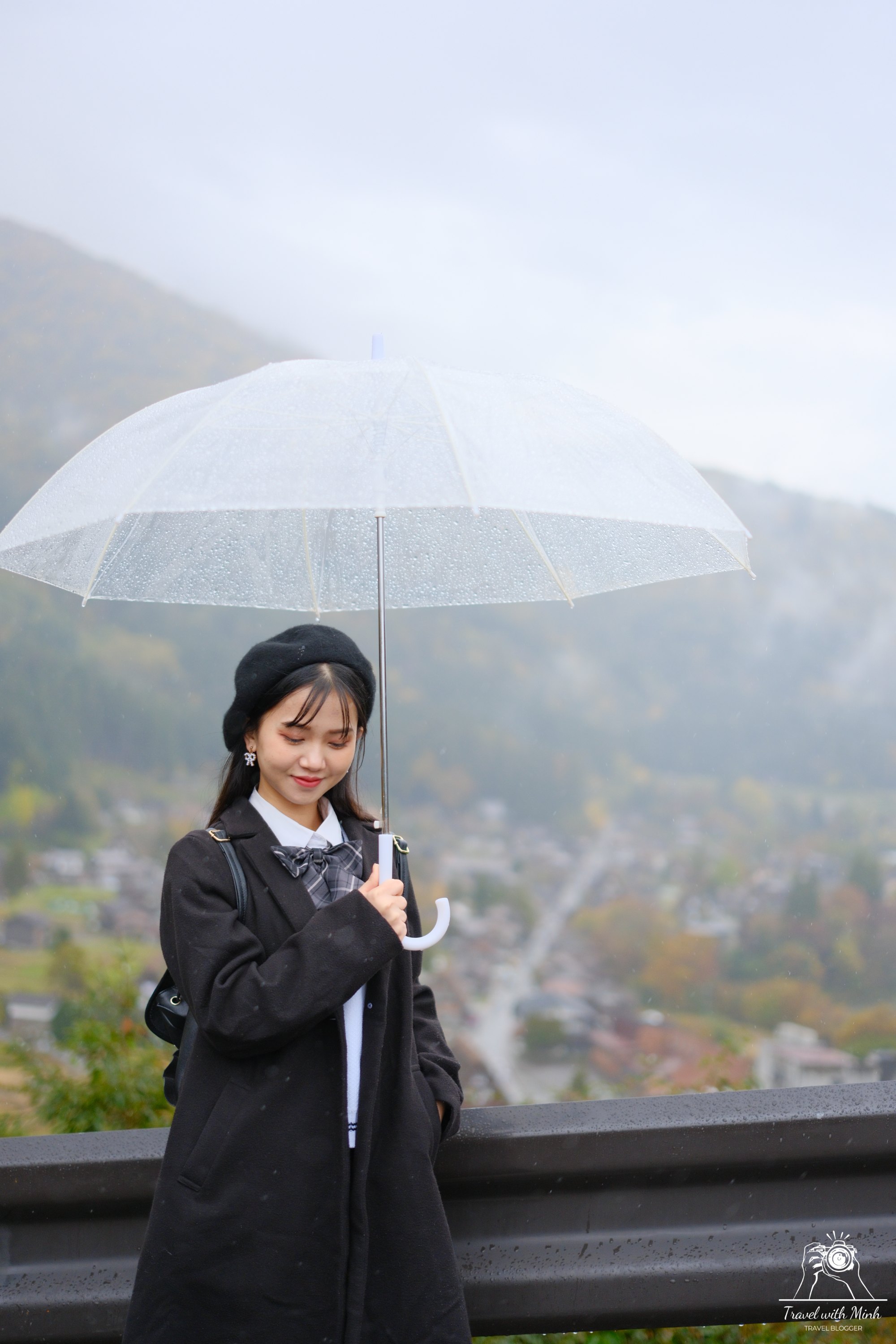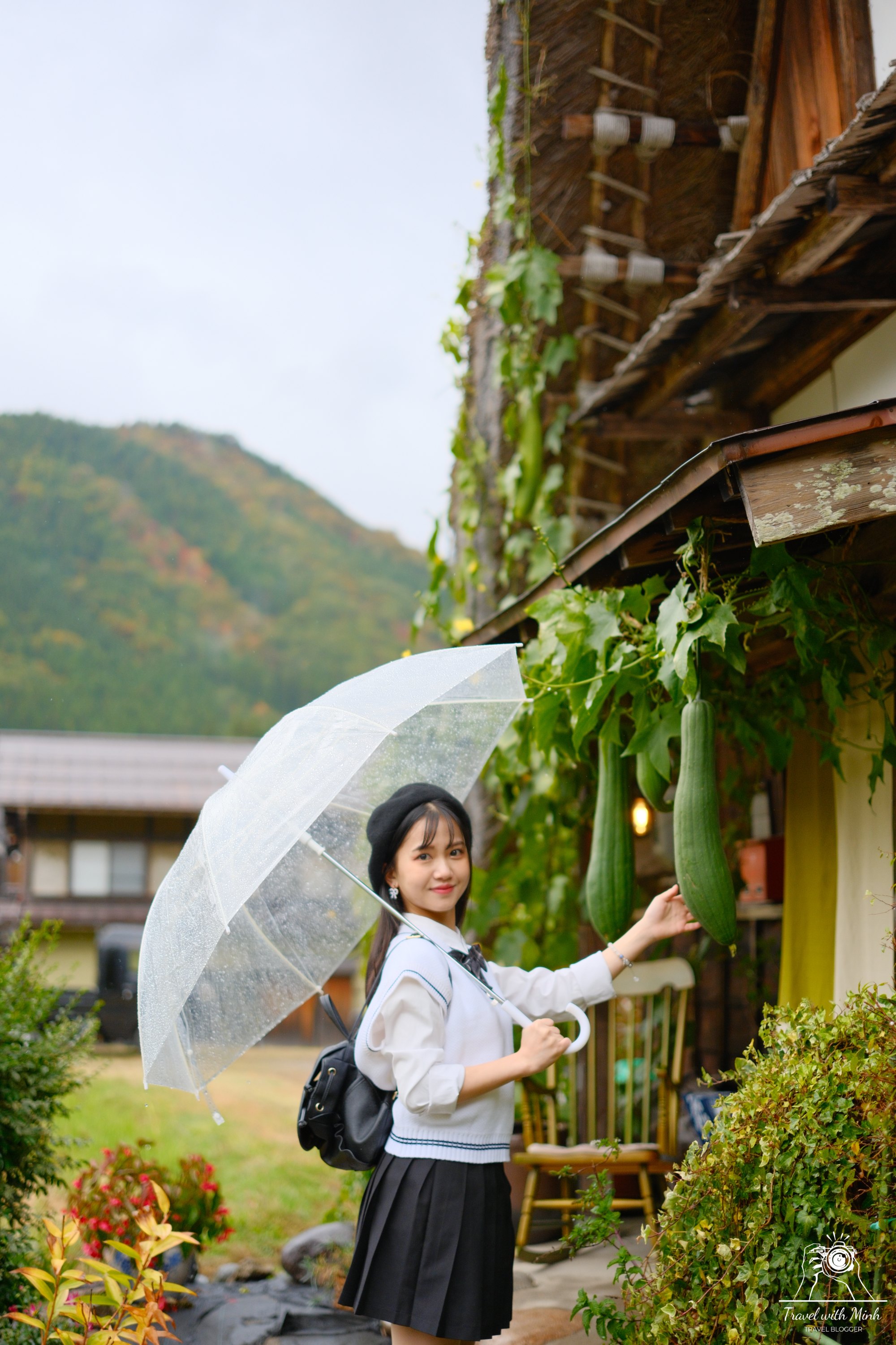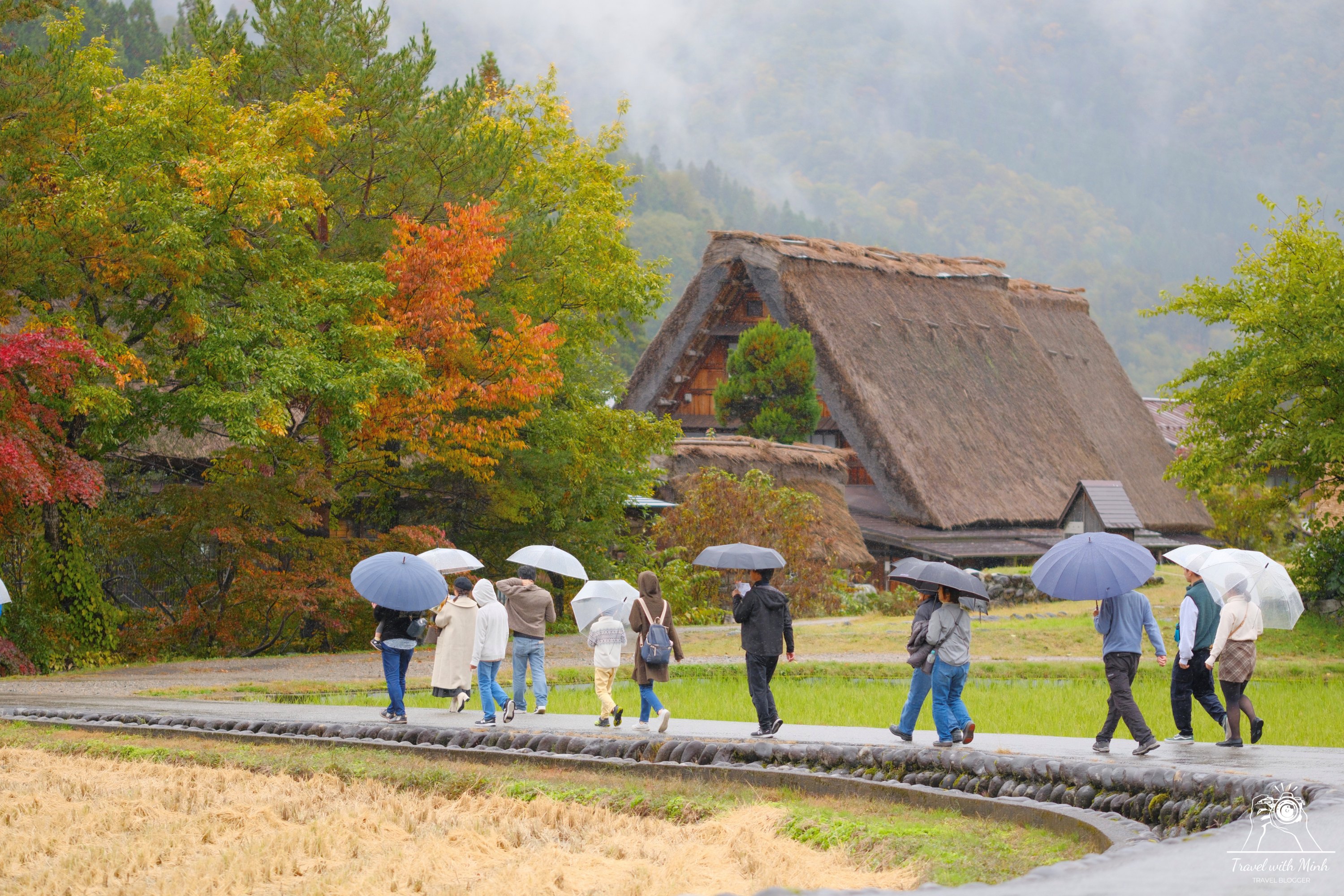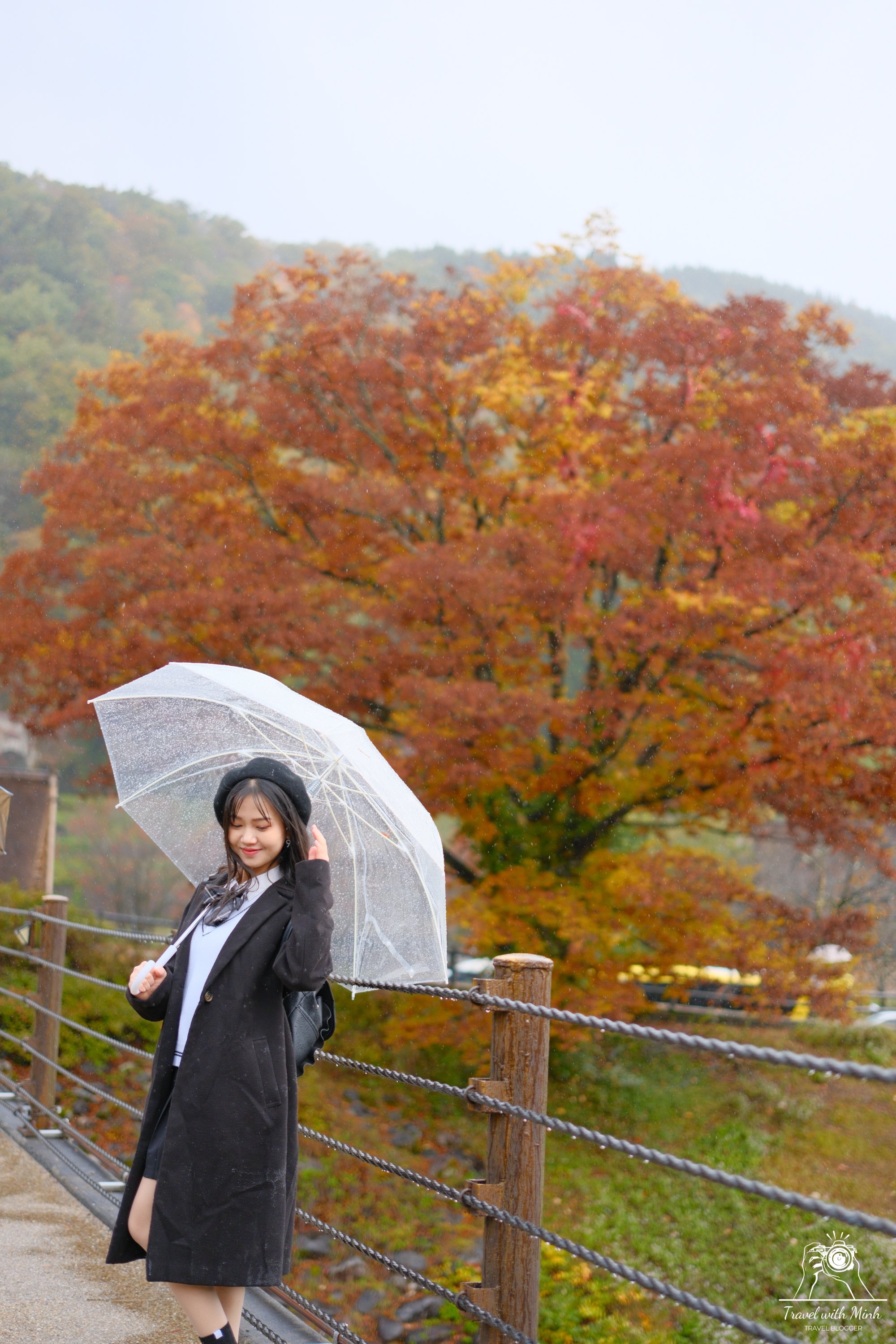 Mình quyết định đến Shirakawago vào cuối tháng 10, khi mà lá cây đã bắt đầu chuyển sang màu vàng và đỏ hết. Và thật không may, trời đã đổ mưa rất to khi mình tới nơi.