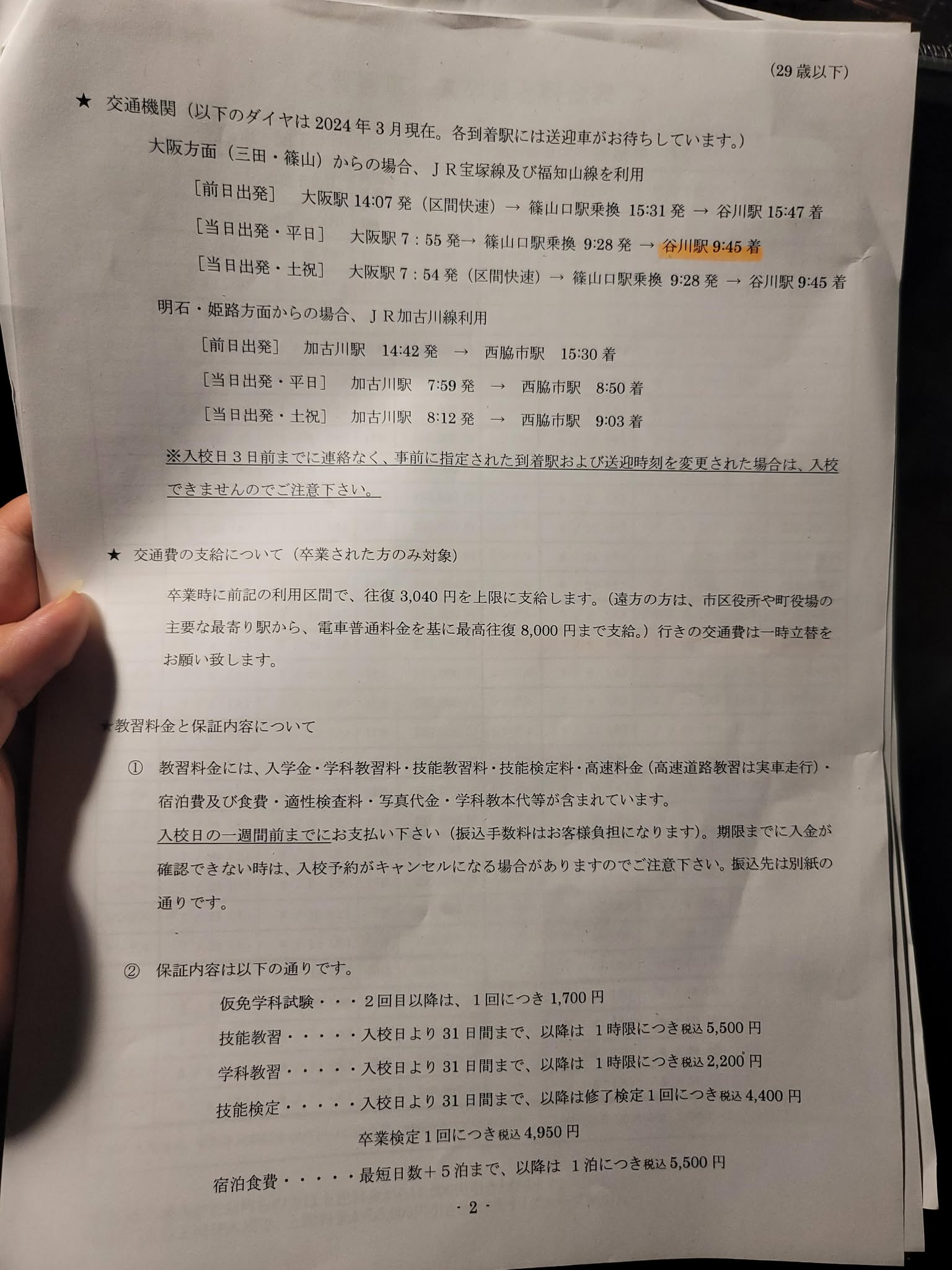 - Hướng dẫn di chuyển đến trường học: Vì trường học nằm ở một vùng quê khá xa thành phố cũng như ga tàu, nên trường học sẽ điều xe đến đón bạn ở một khung giờ tại ga tàu chỉ định sẵn (như ảnh trên của mình là lúc 9h45 sáng tại ga Tanikawa). Và nếu như bạn ở xa và không kịp đến lúc 9h45 ngày nhập học, thì có thể đến từ chiều ngày hôm trước (trong ảnh là lúc 15h47 tại ga Tanikawa). Phí đi lại từ nhà bạn tới ga Tanikawa và chiều ngược lại cũng sẽ được trường hoàn trả 100% lúc bạn tốt nghiệp.