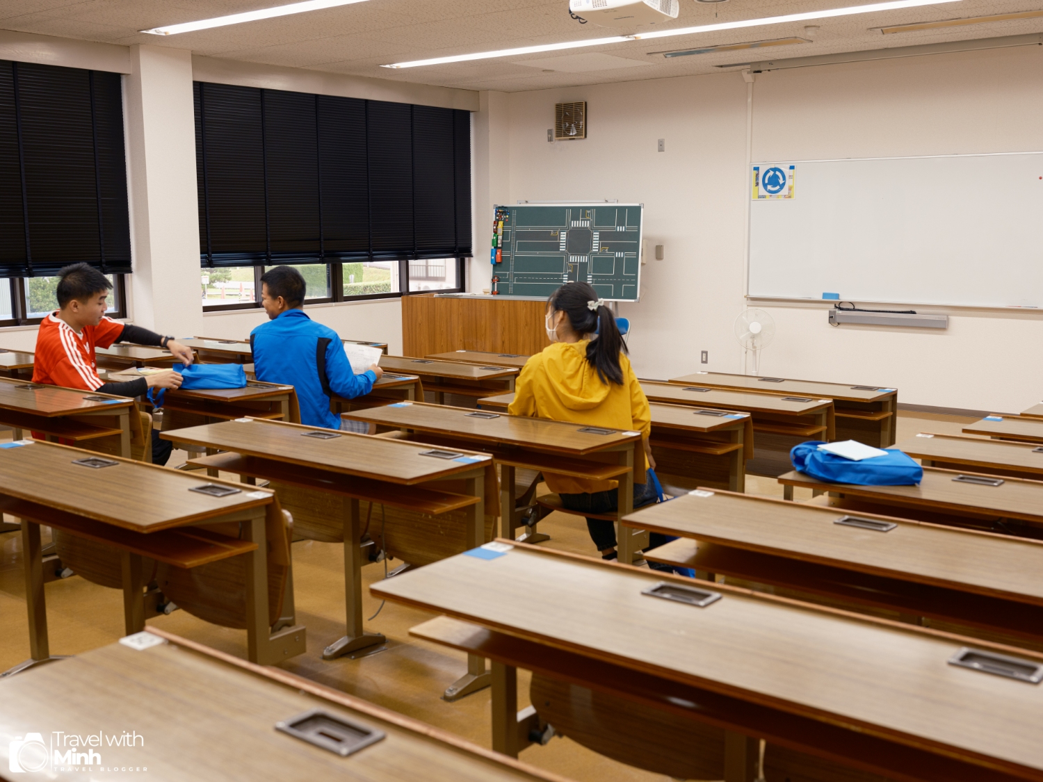 Sau khi hoàn thành các thủ tục nhập học, mình được dẫn đi nhận phòng ở ký túc xá. Phòng có đầy đủ trang thiết bị cần thiết cho bạn, như giường, đệm, bàn làm việc, điều hoà, TV, … Có sẵn phòng giặt đồ và phòng tắm Onsen cho mọi người nữa.