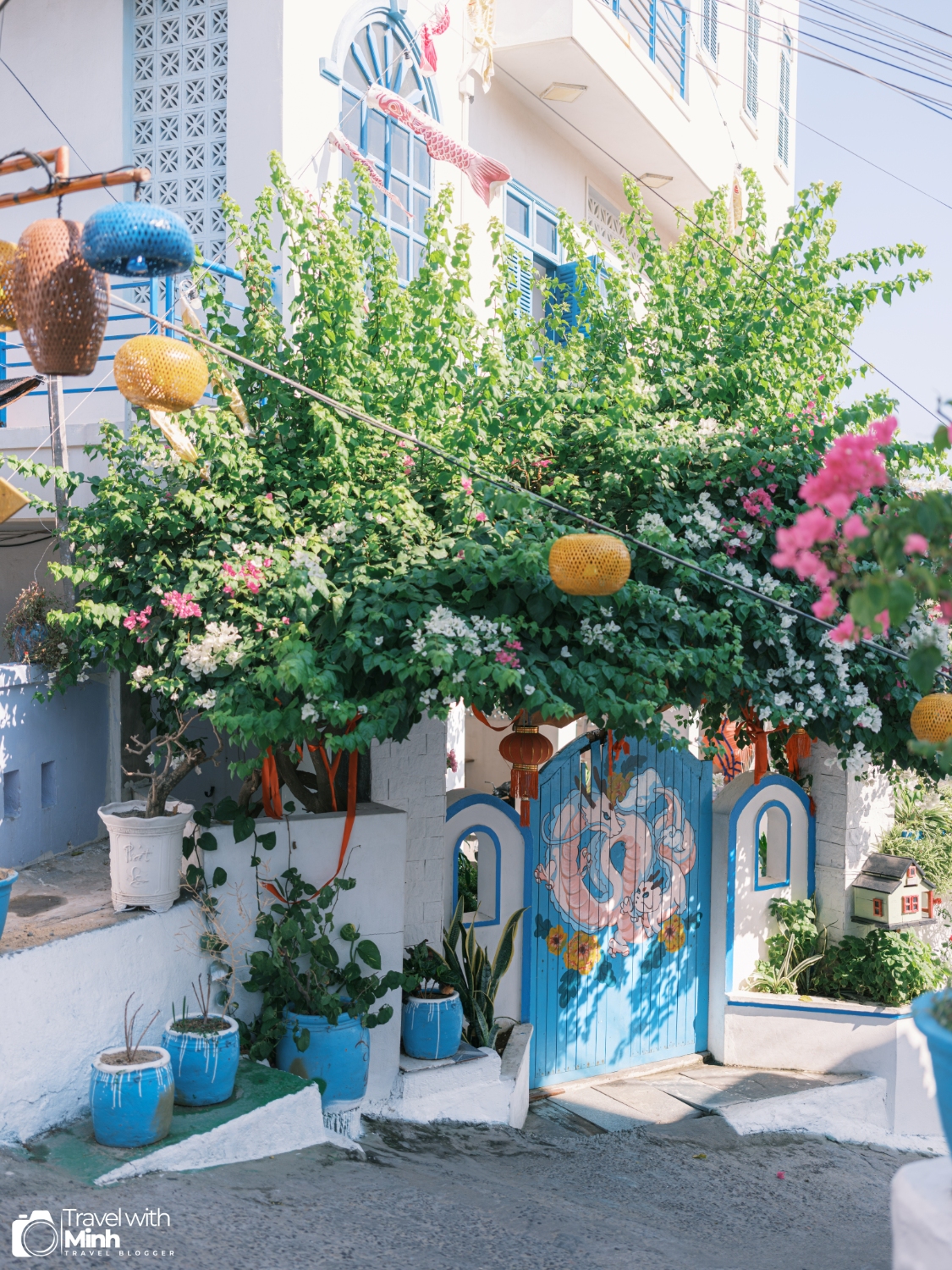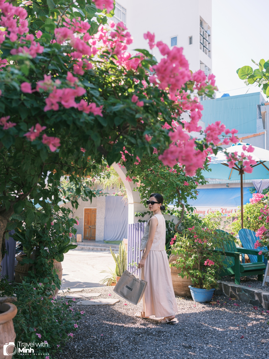 Quán có khuôn viên rộng, nhiều góc chụp ảnh, thời điểm mình đi (tháng 8) còn có hoa giấy rất đẹp nữa.