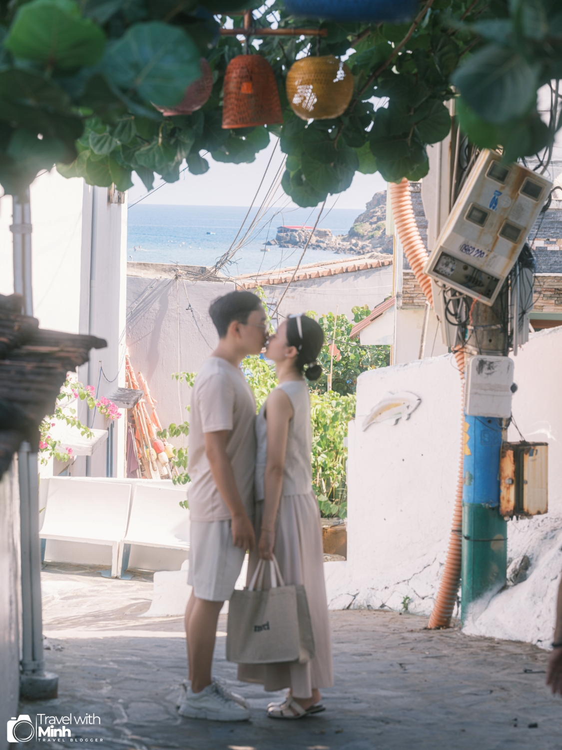 Đặc biệt là ở cửa sau của quán có một con đường cực đẹp dẫn tới làng chài Nhơn Lý nữa. Bạn chỉ cần để xe lại tại quán café và đi bộ xuống chụp ảnh. Thời gian chụp ảnh cũng chỉ khoảng 30 phút là xong.