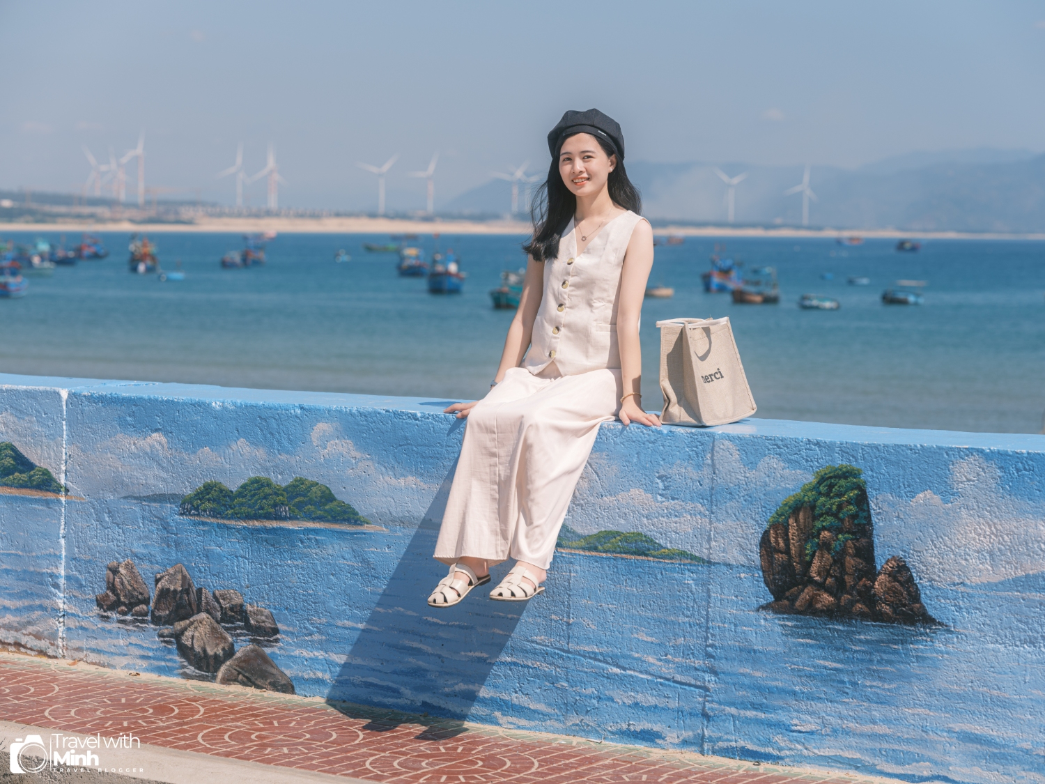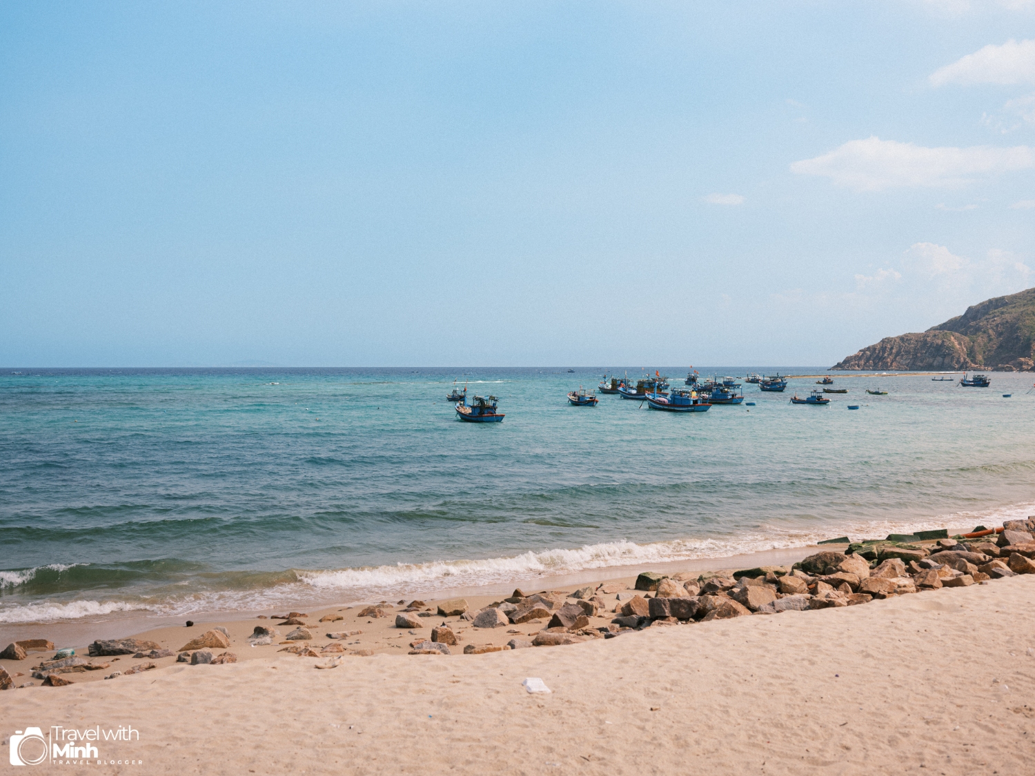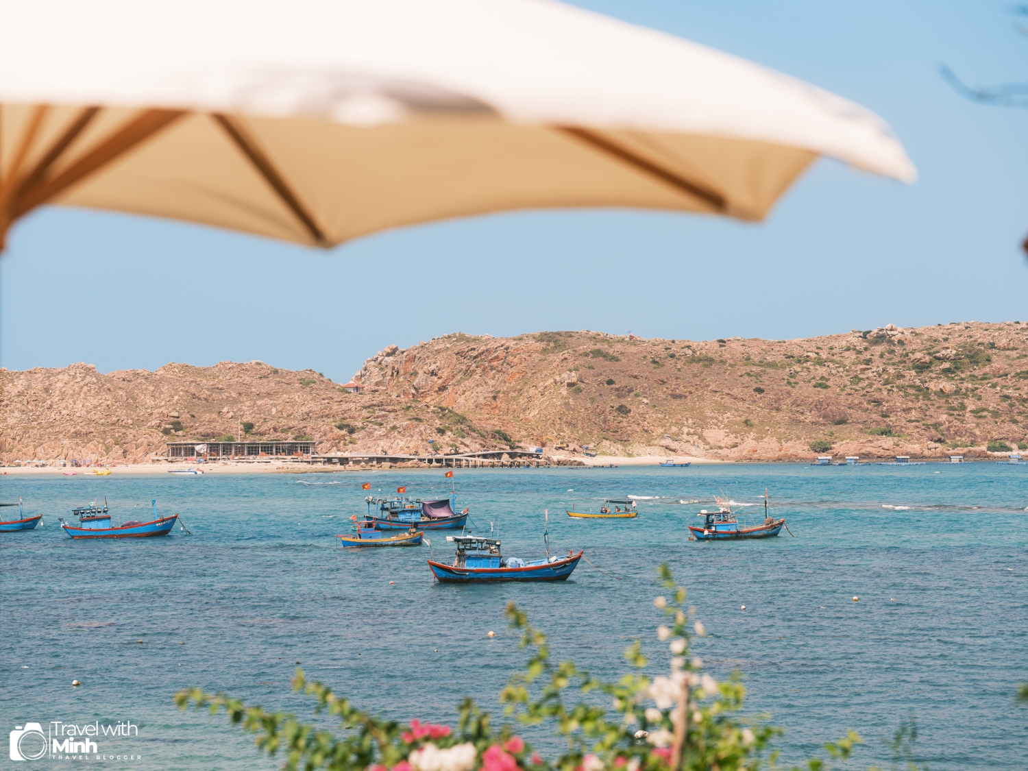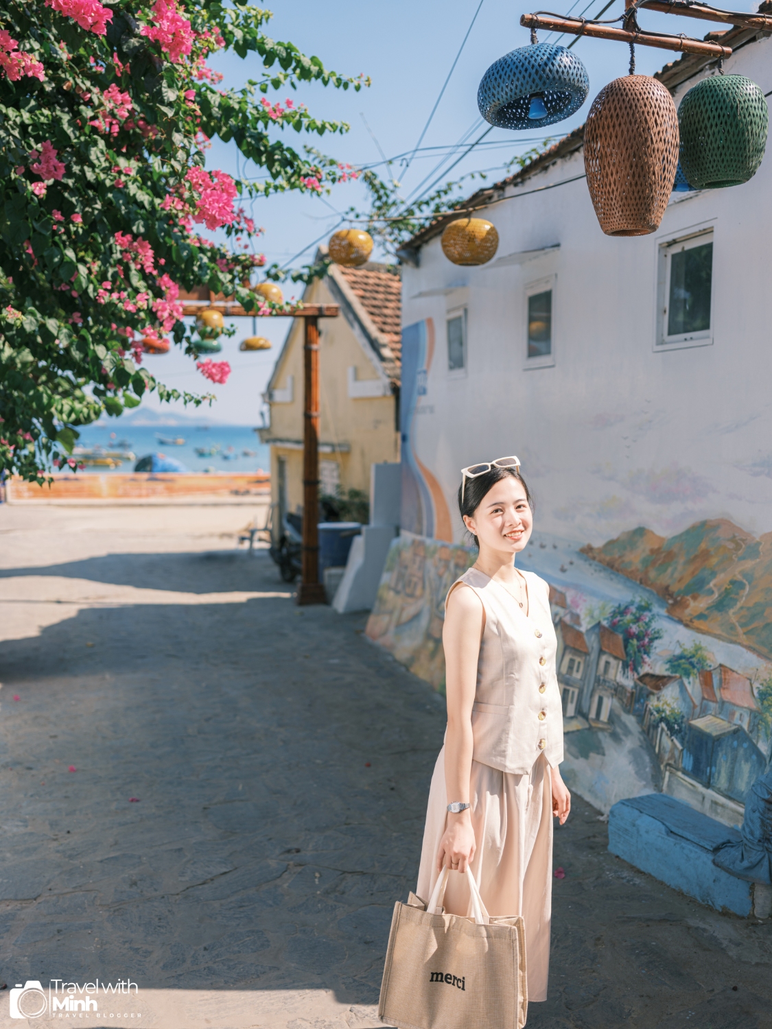 Làng chài Nhơn Hải với biển xanh, nắng vàng, cùng với hàng trăm con thuyền đánh cá đang neo đậu tạo nên khung cảnh rất yên bình.