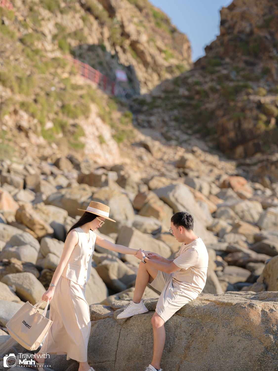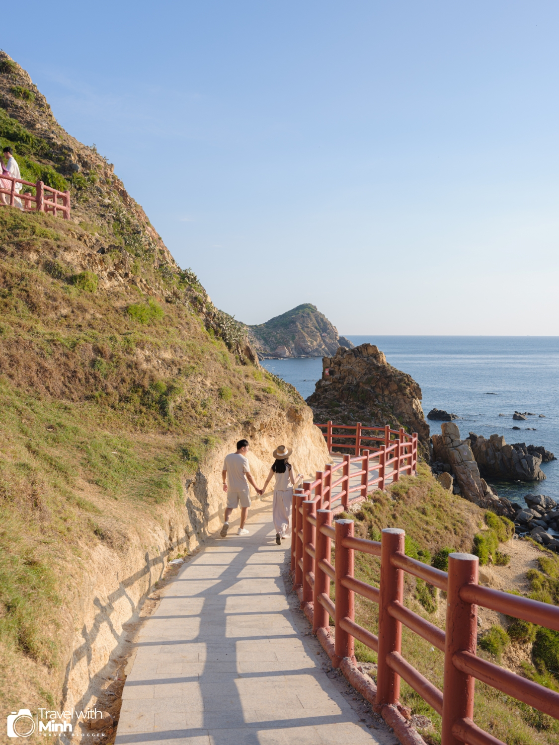 Ở đây cũng có bậc thang đi xuống bãi đá ven biển phía dưới, là địa điểm mà mọi người chụp nhiều nhất khi ở Eo Gió.