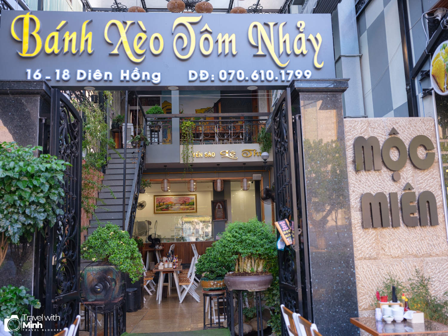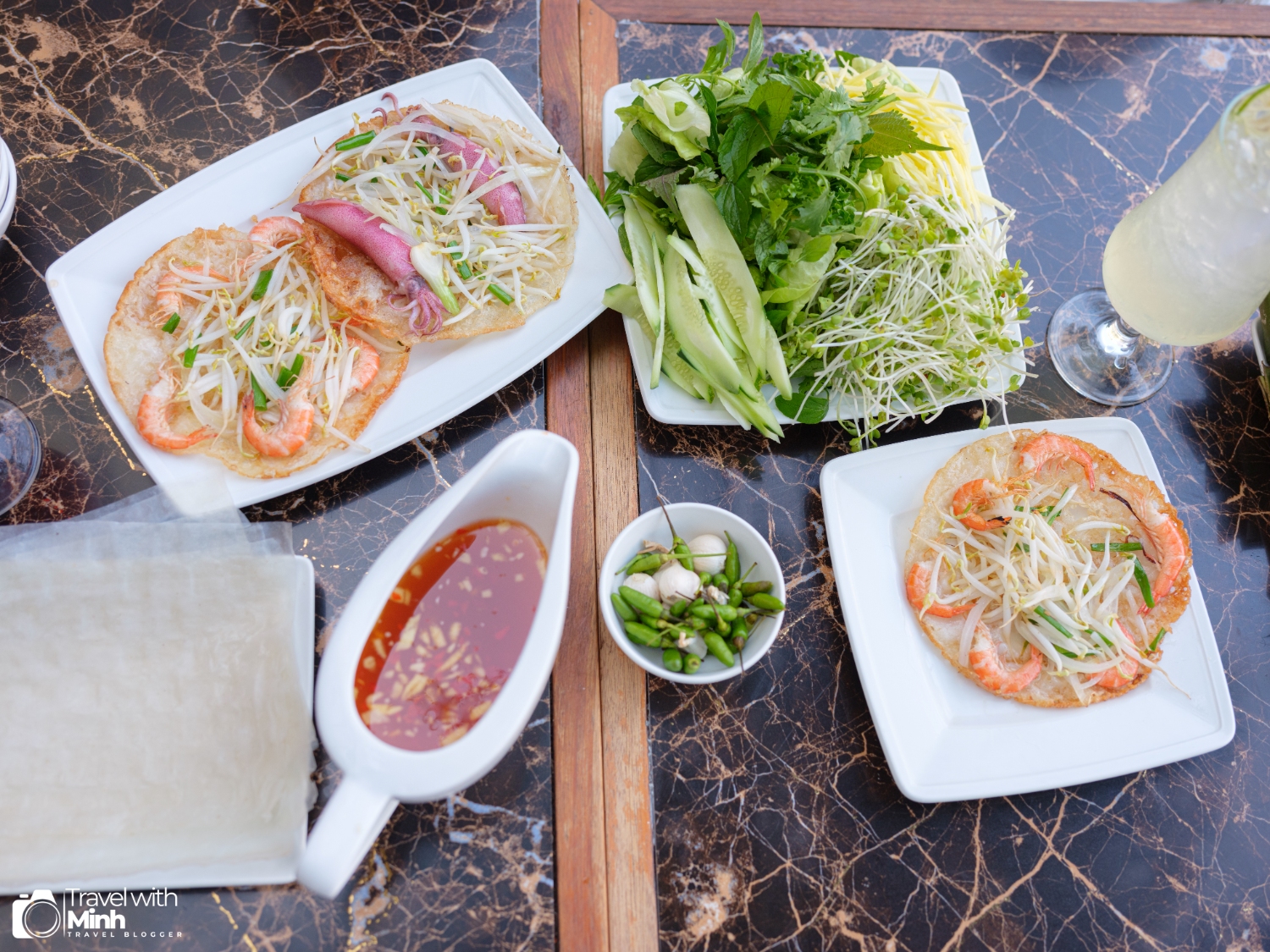 Và địa điểm cuối cùng trong ngày khám phá Quy Nhơn của mình là quán bánh xèo tôm nhảy – một đặc sản ở Quy Nhơn. Quán ăn hôm nay mình chọn là quán Mộc Miên, ở ngay sát quán này cũng có một quán bánh xèo khác cũng rất đông, mọi người lựa chọn theo sở thích nhé. Mình sẽ để địa chỉ Google map cả hai quán ở phía dưới: