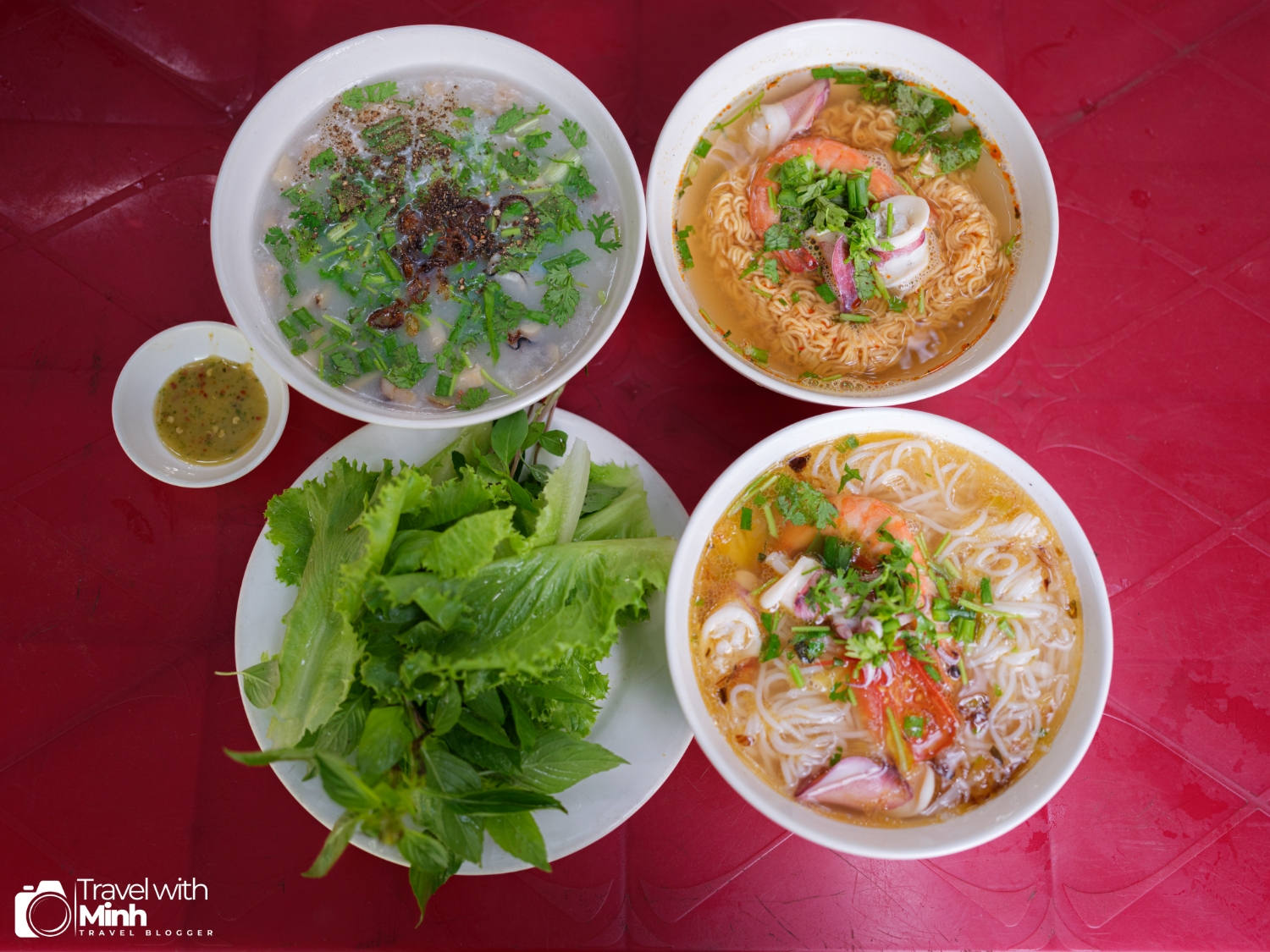 Cháo hàu, mì hải sản, bún hải sản ở Mũi Điện.