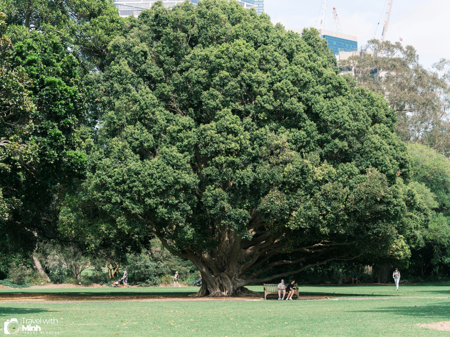 Ở vườn bách thảo này, có một địa điểm mà bạn có thể chụp được toàn cảnh Sydney Opera House, cầu Harbour Bridge và thành phố ở phía sau.