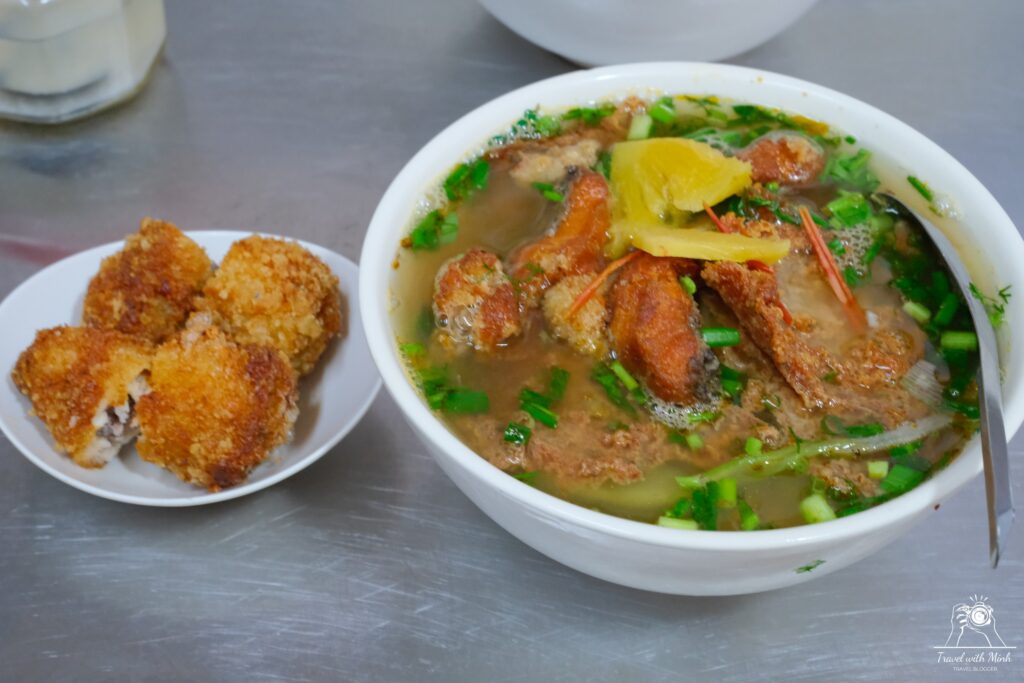 Một cửa hàng bún cá lâu đời nổi tiếng ngay gần Ban công café, với món cá cuốn thịt đặc trưng.