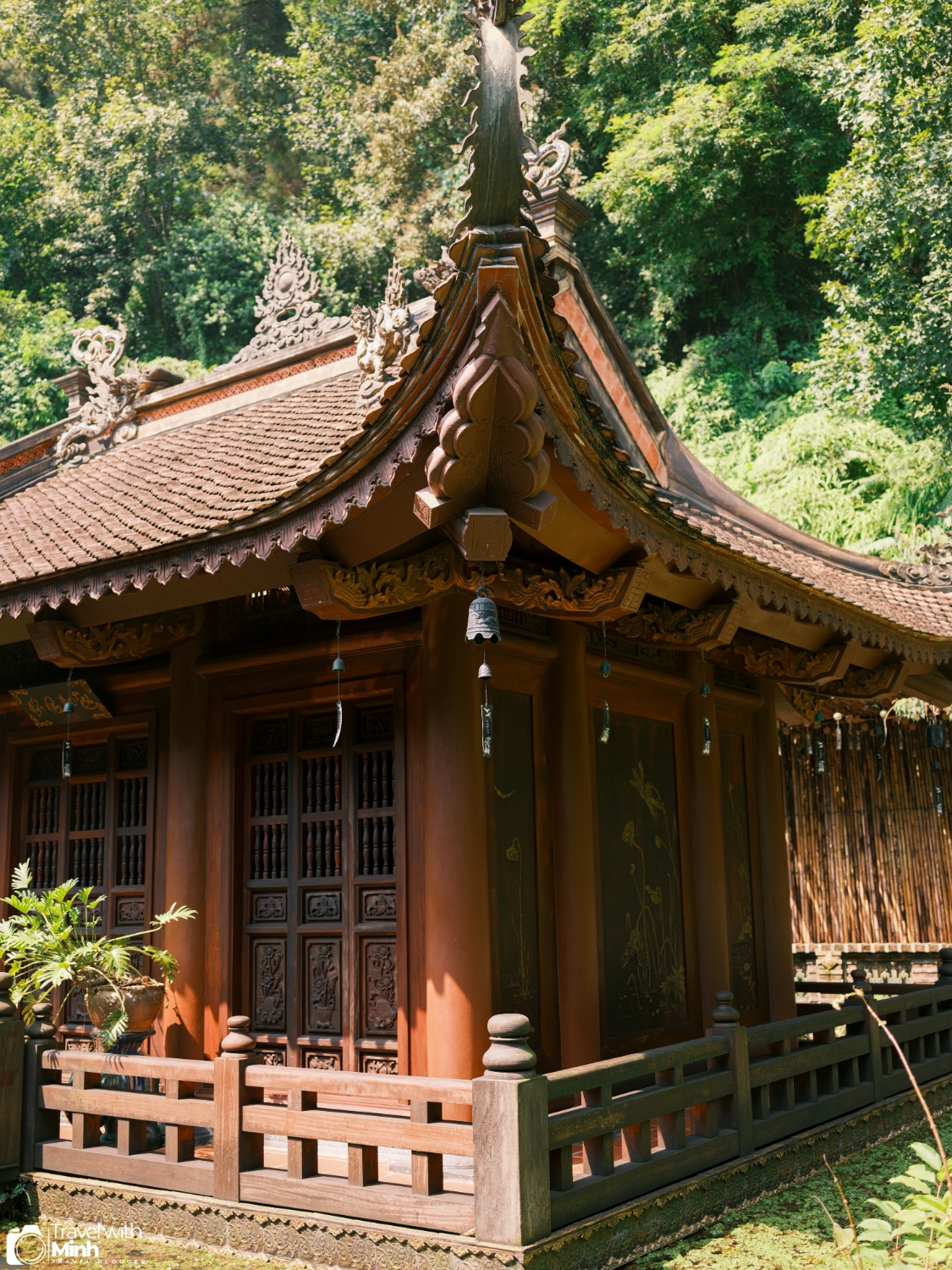 Màu sắc chủ đạo của ngôi chùa là màu gỗ nâu, và mái ngói đỏ có trạm khắc rồng rất tỷ mỉ.
